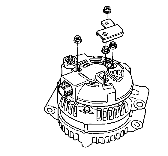 4. Remove the harness stay and the three flange nuts from the alternator.