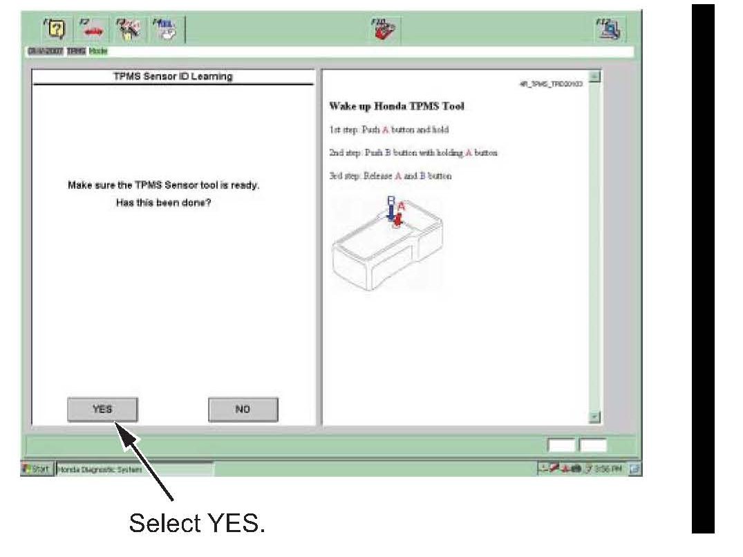 10. On the TPMS Sensor ID Learning screen, turn on the TPMS sensor tool by following the on-screen instructions. The Accord is shown on the sample screen.