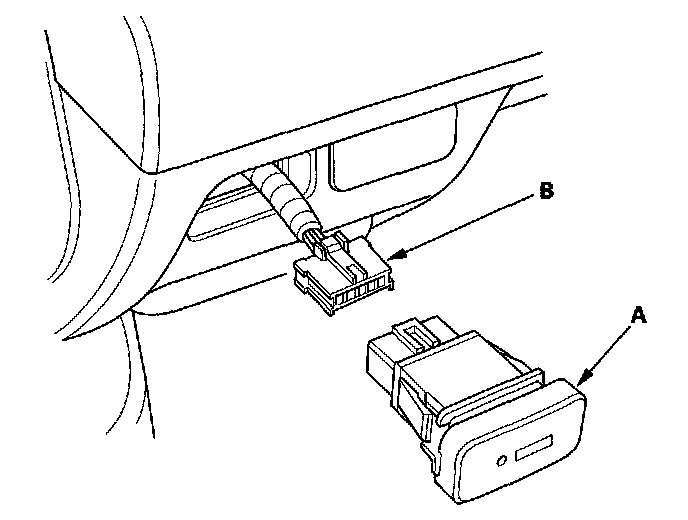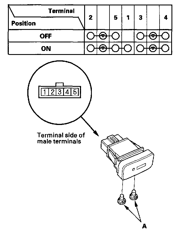 2. Check for continuity between the terminals in each switch position according to the table. If there is no continuity, replace illumination bulbs (A) or the switch.