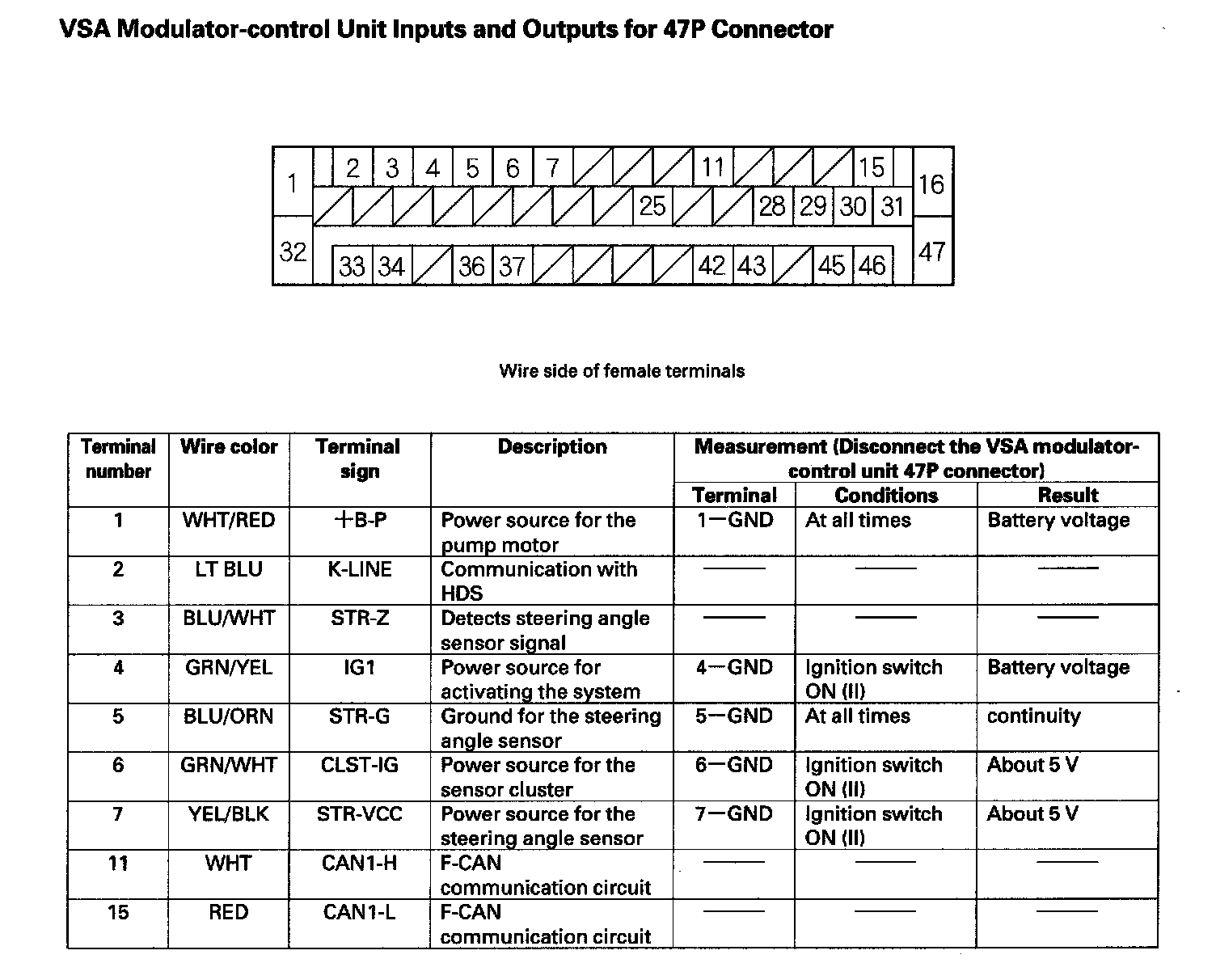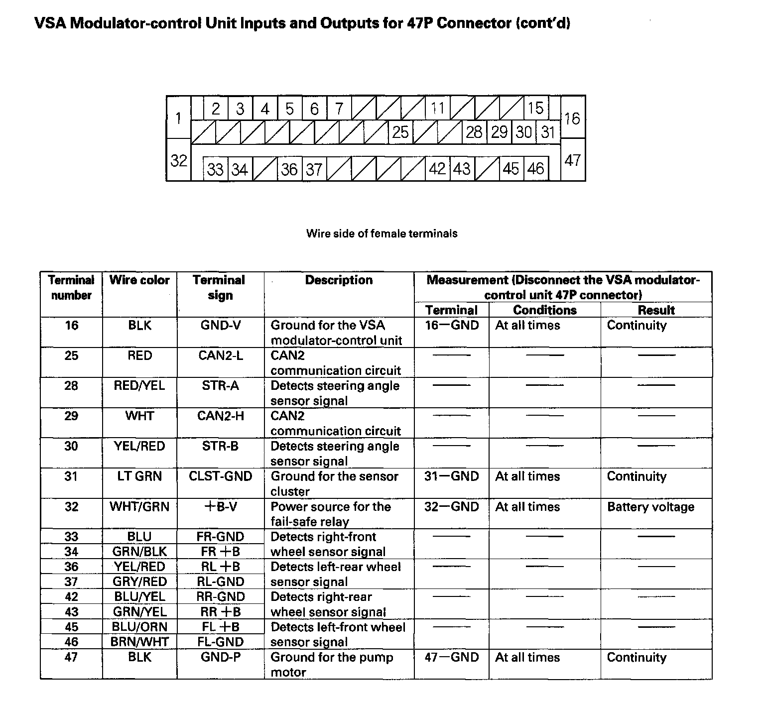 VSA Modulator-control Unit Inputs and Outputs for 47P Connector (Part 1):
