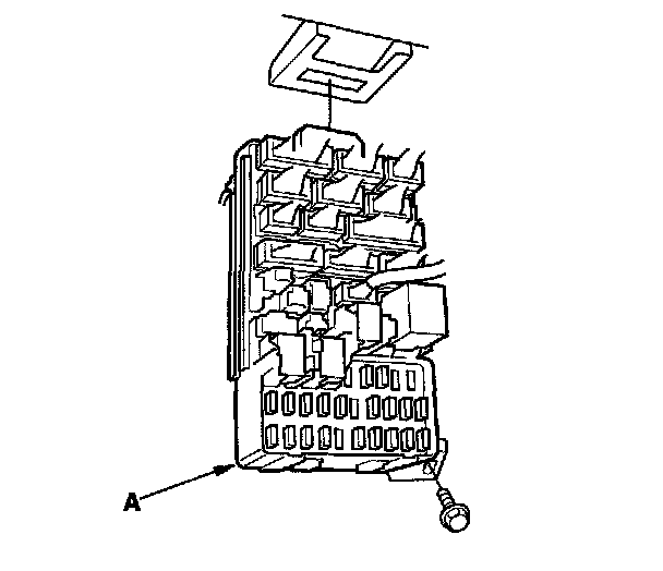 5. Remove the mounting bolt and the under-dash fuse/relay box (A).