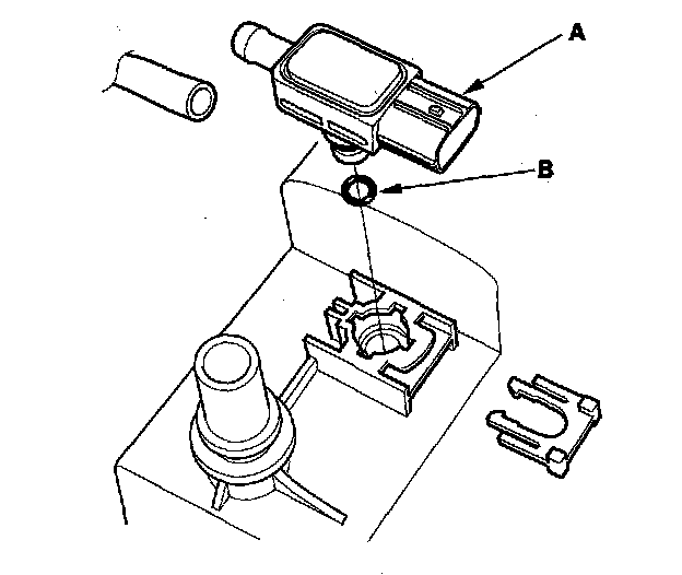 Install the parts in the reverse order of removal with a new O-ring (B).