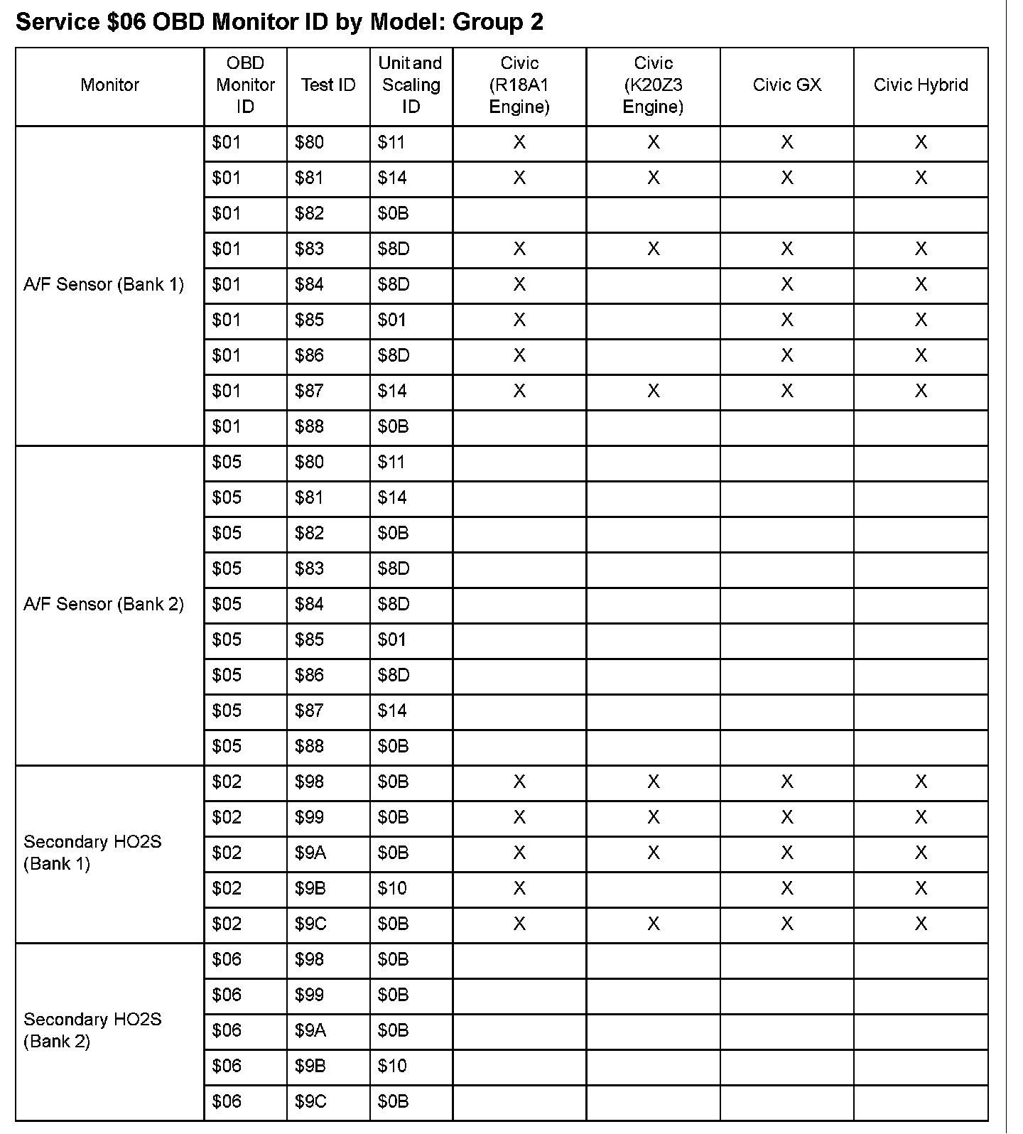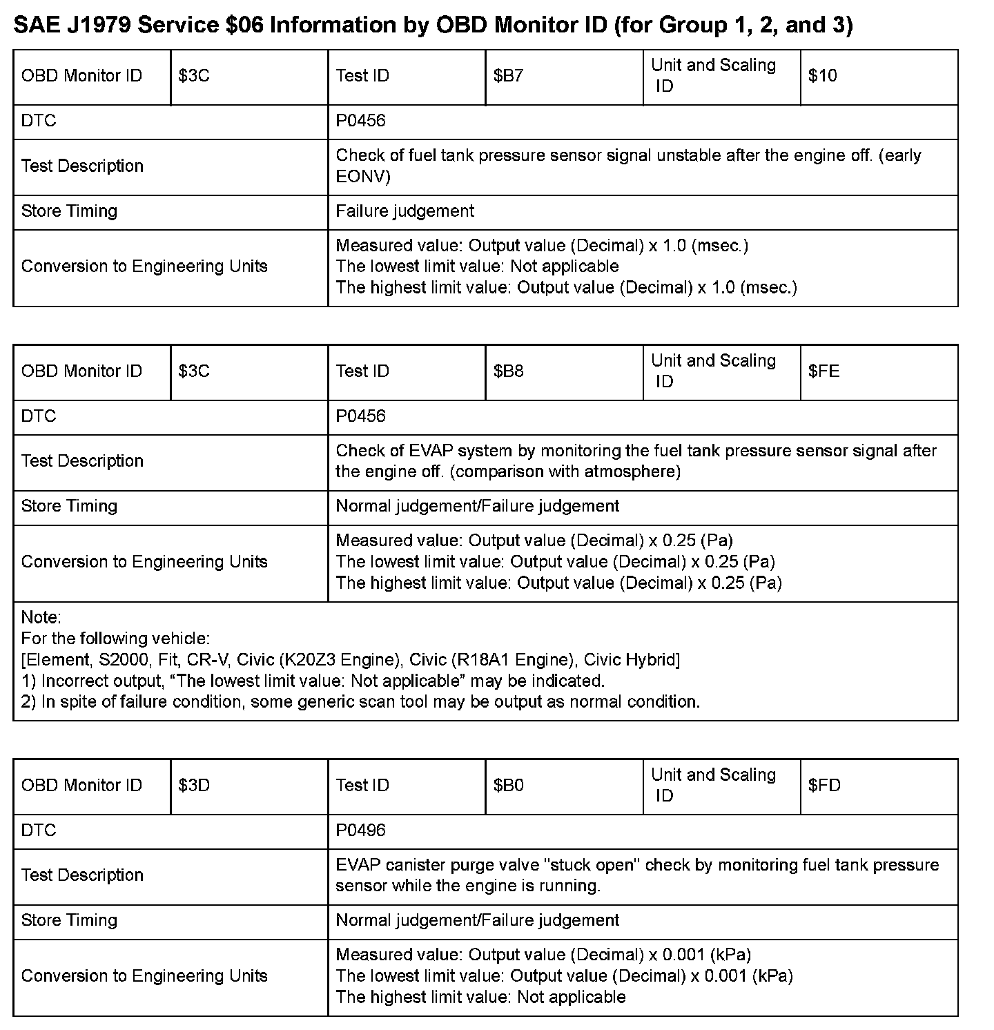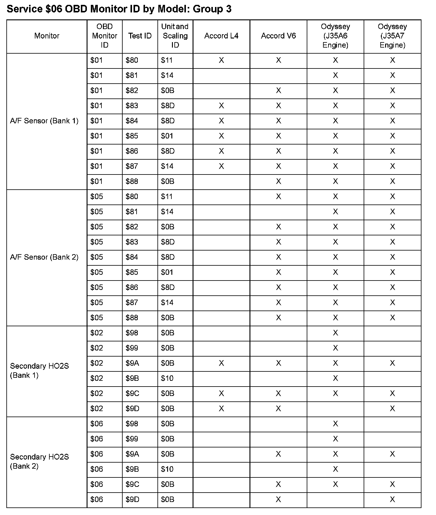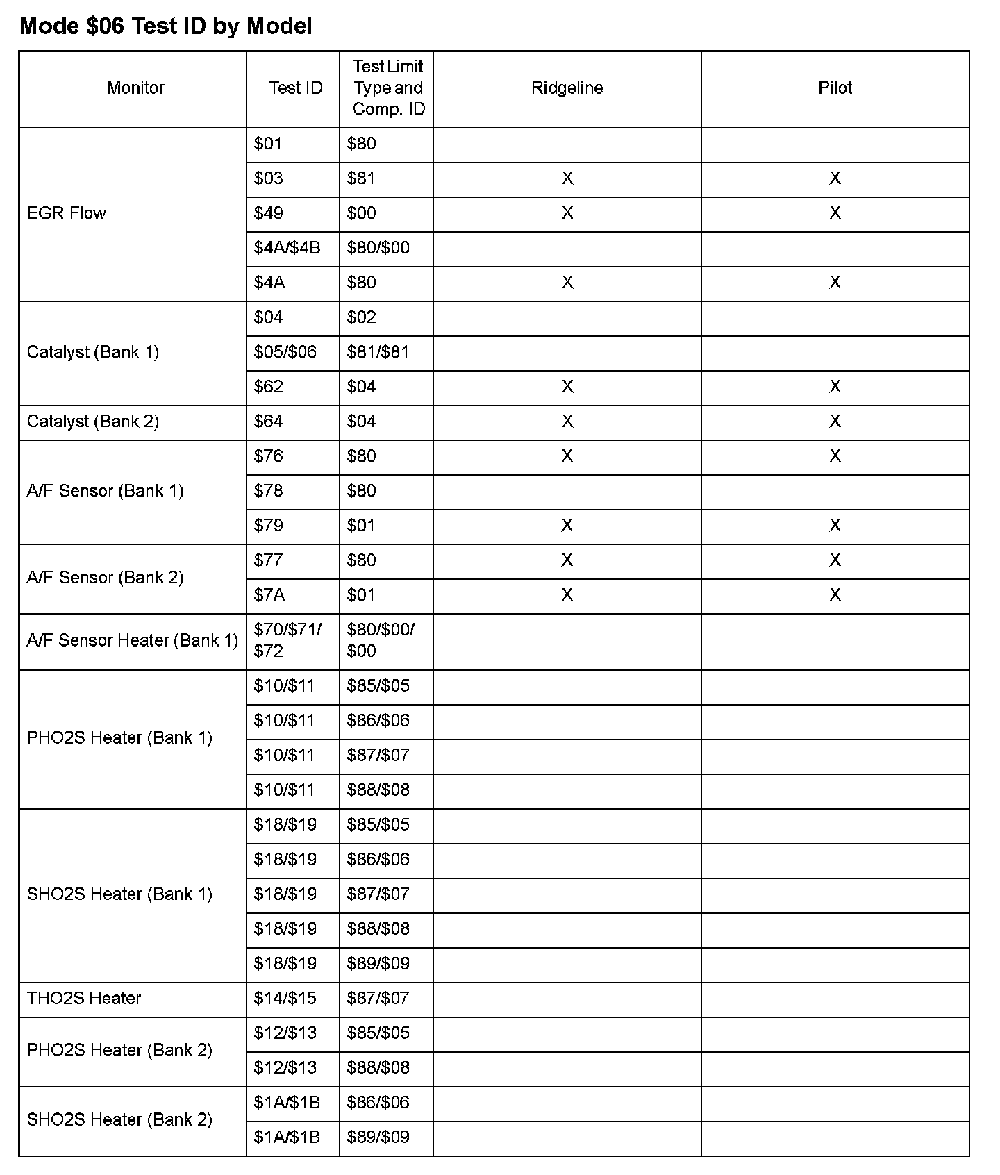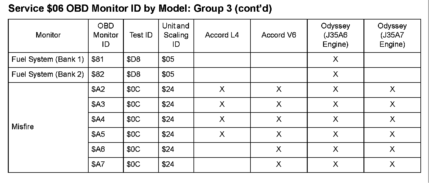 SAE J1979 Mode $06 Test Information: All 2008 Hondas