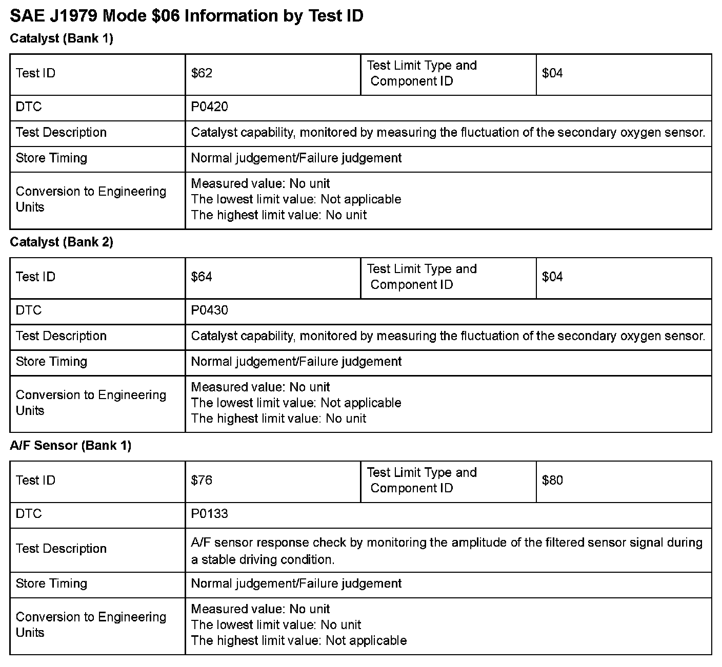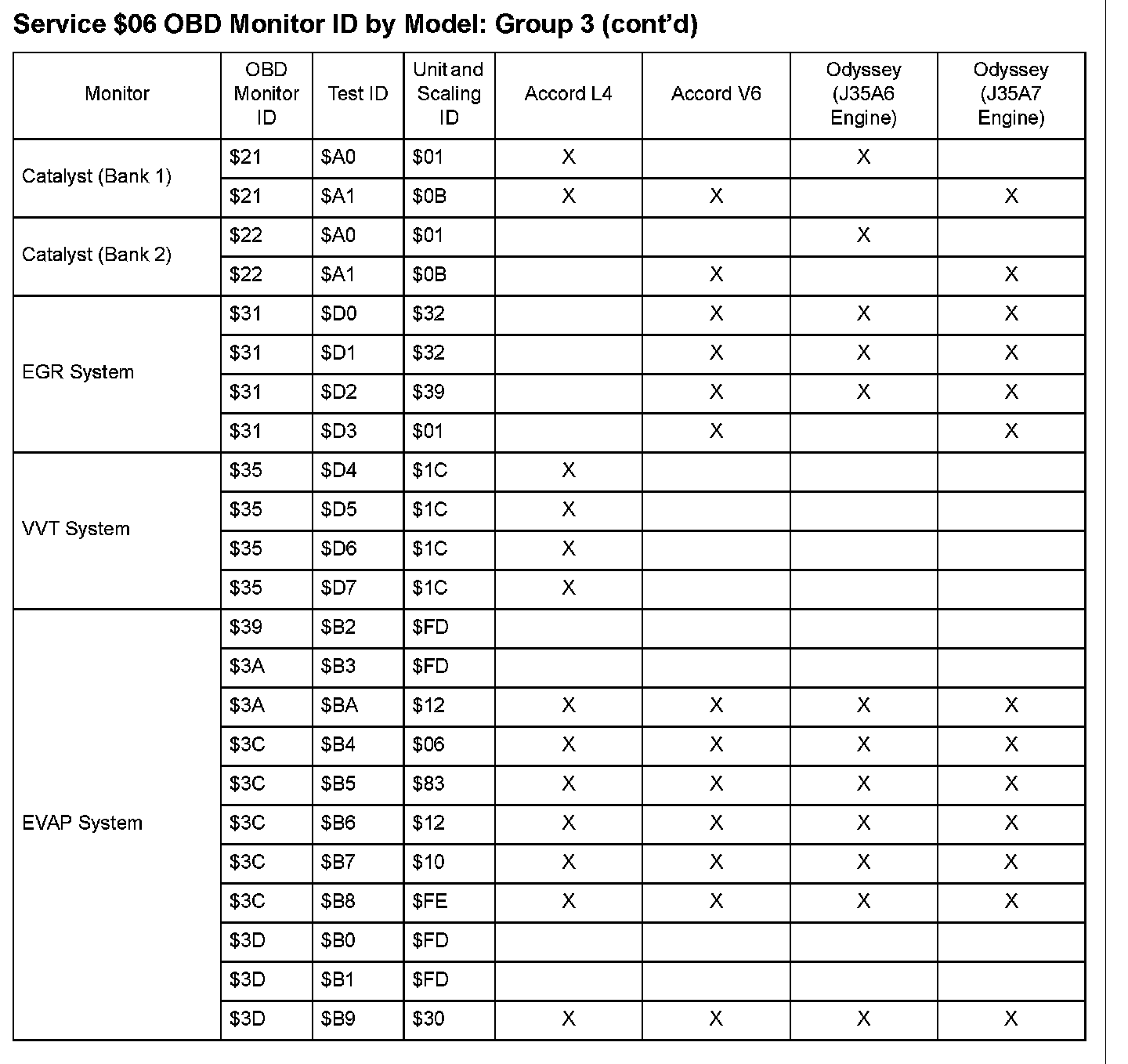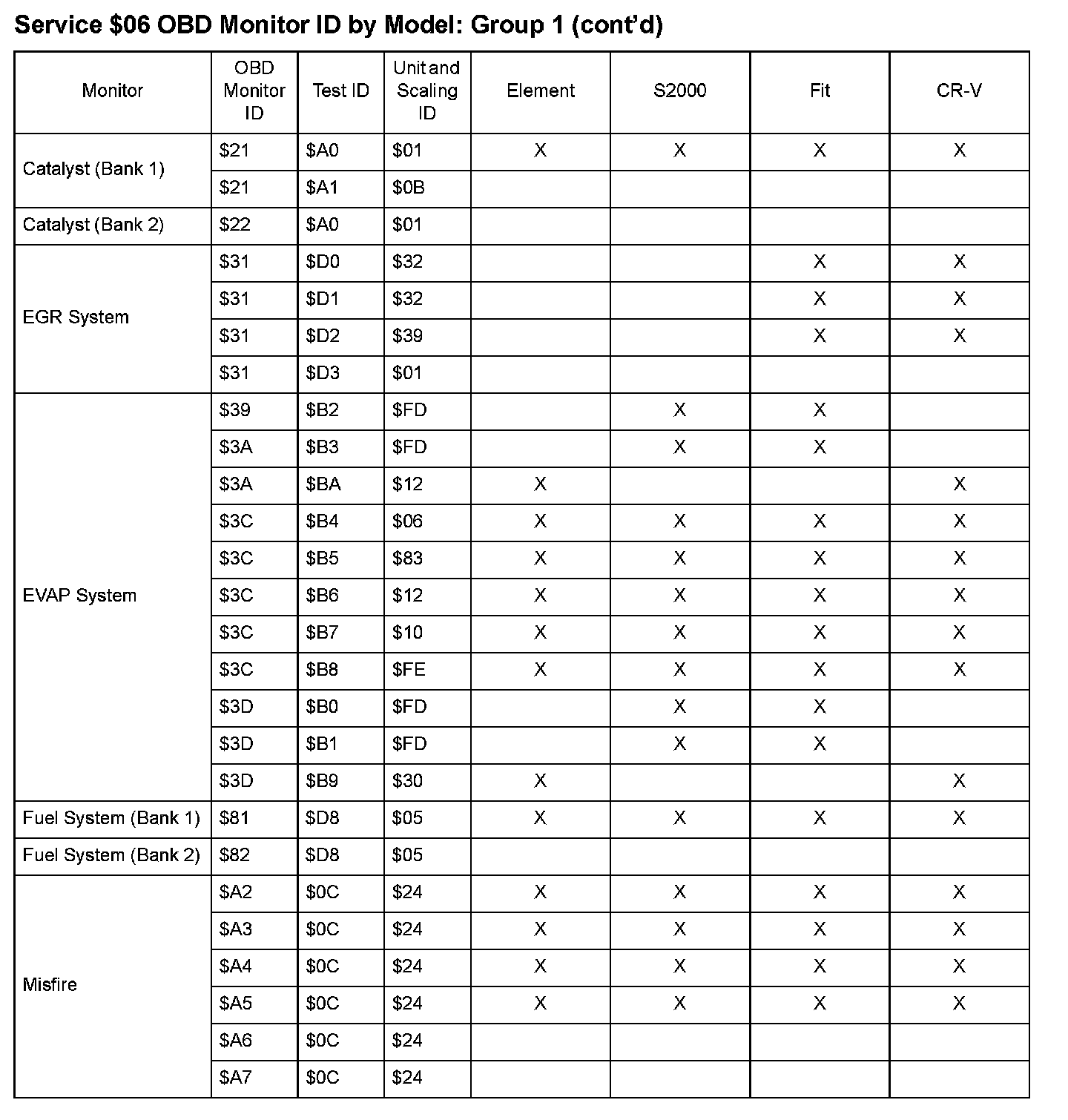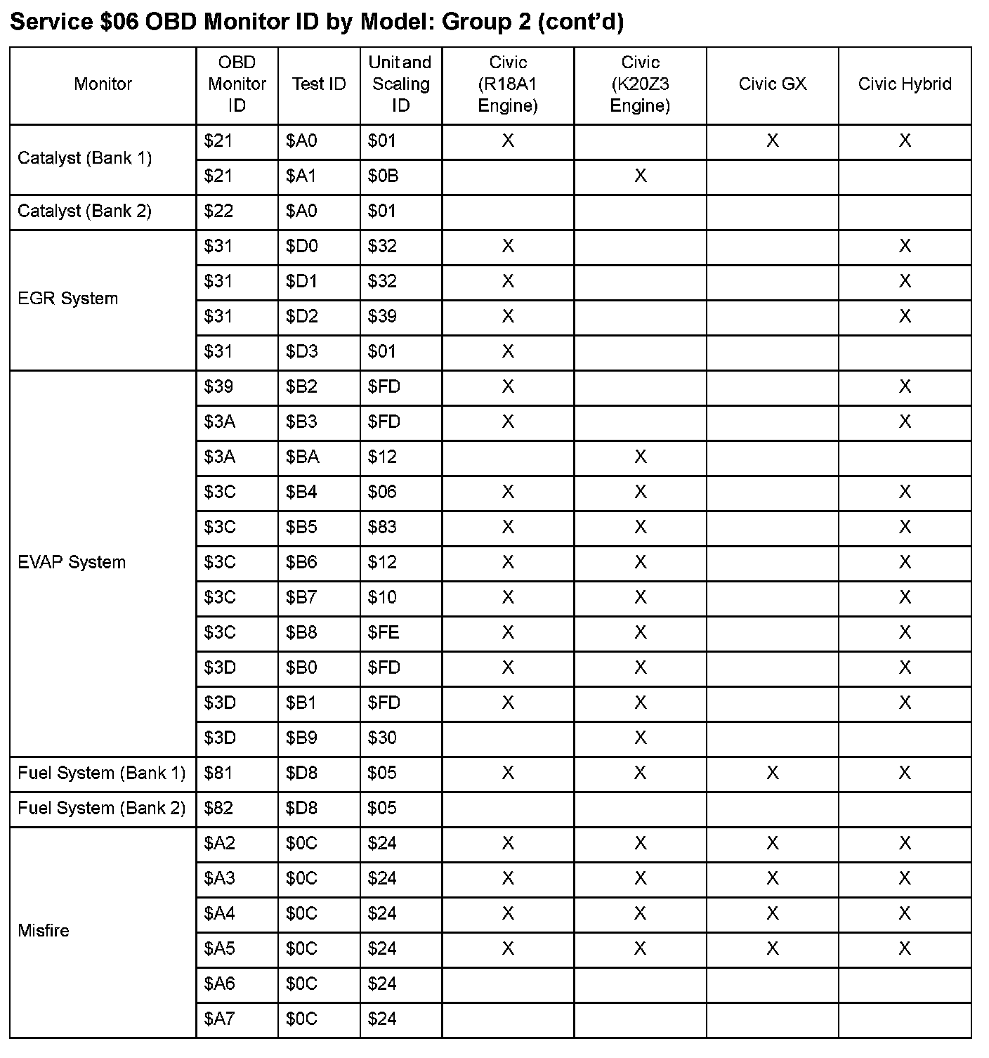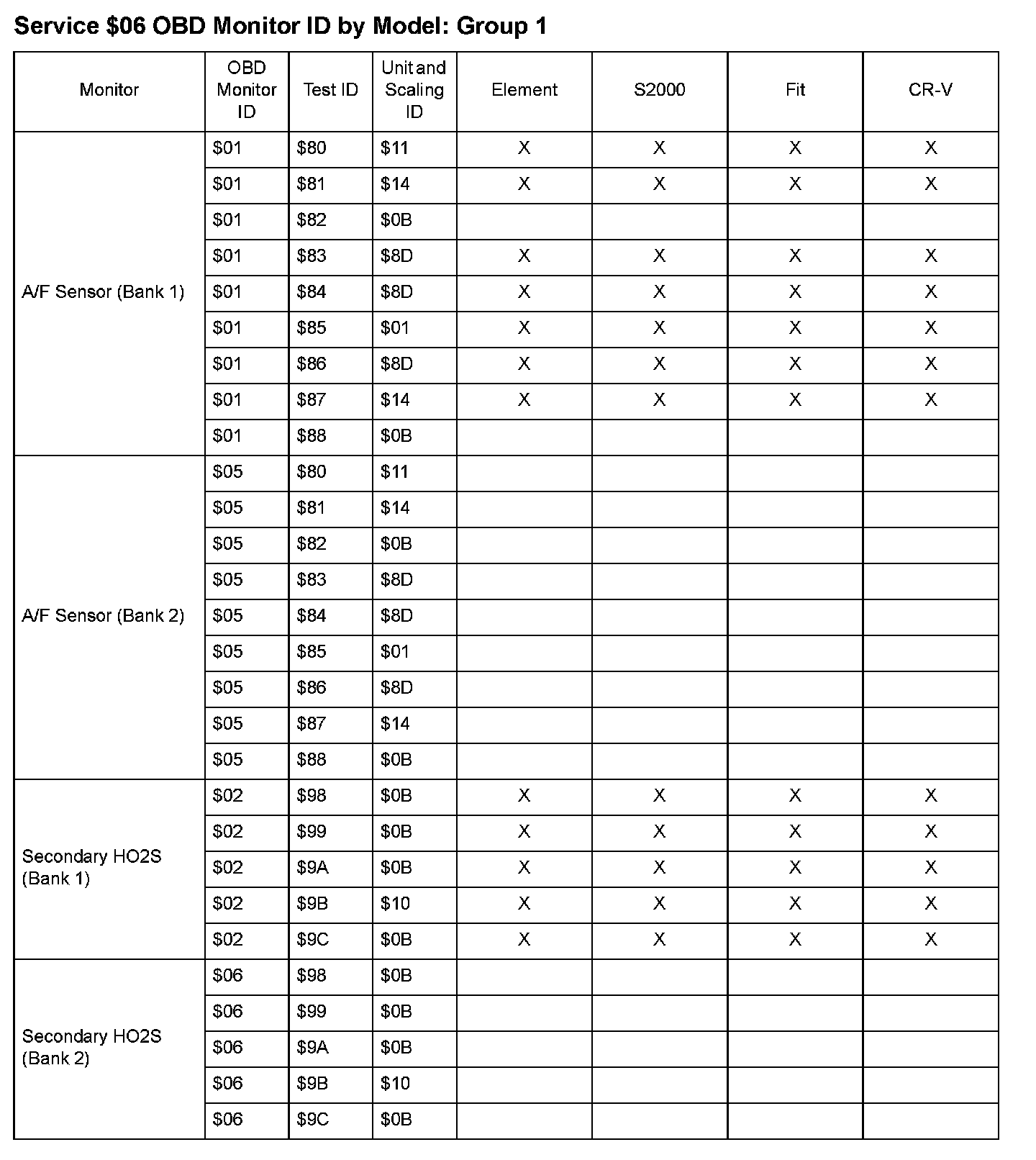 SAE J1979 Mode $06 Test Information: All 2008 Hondas
