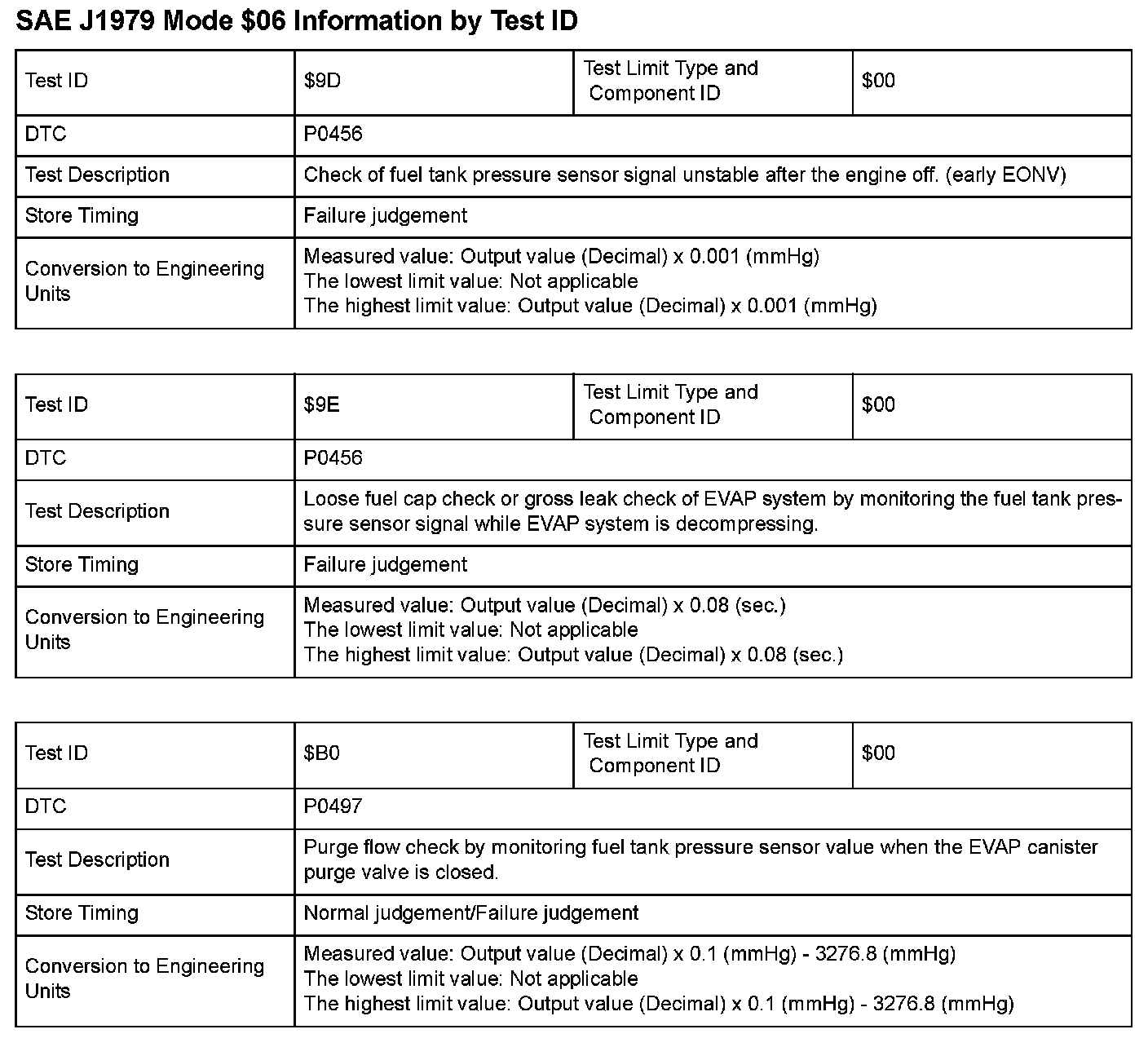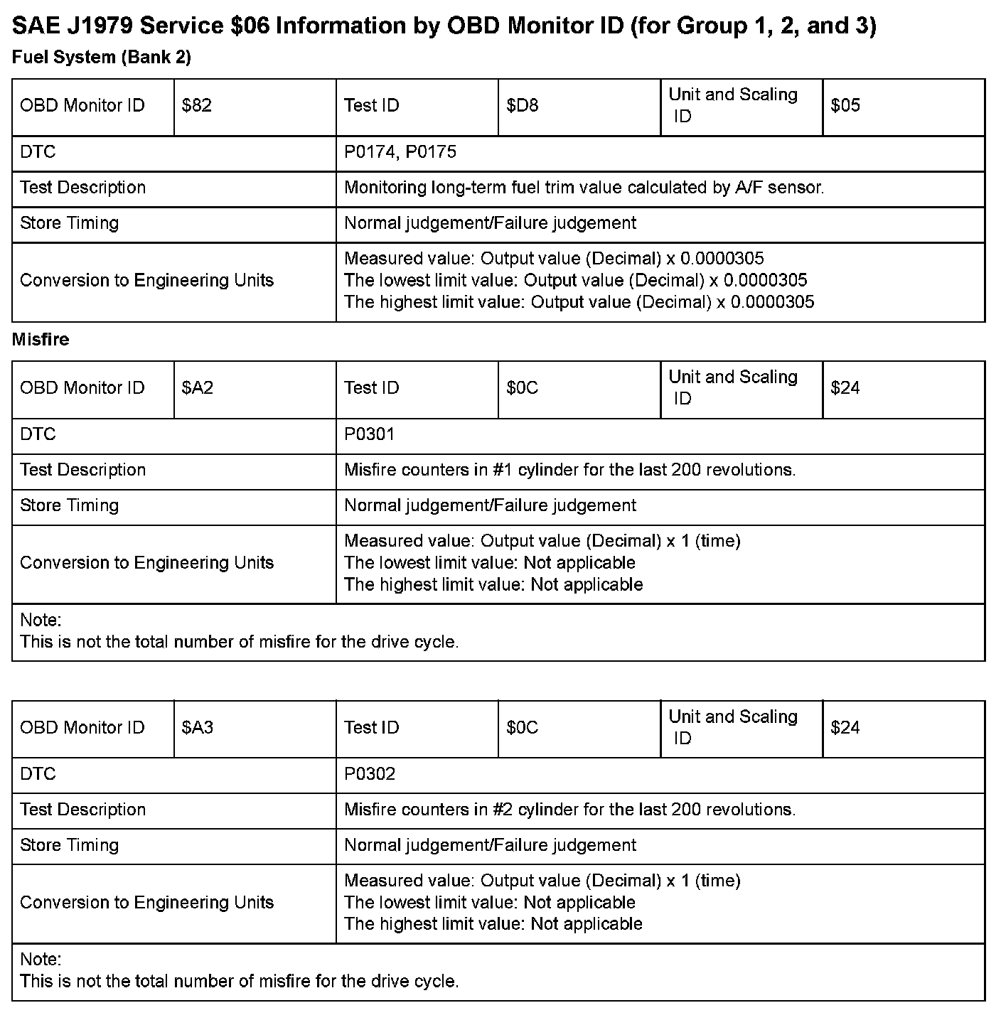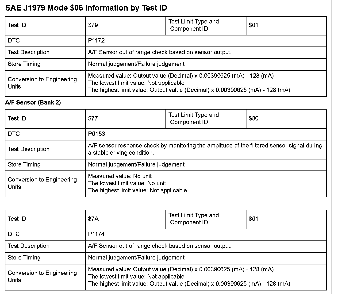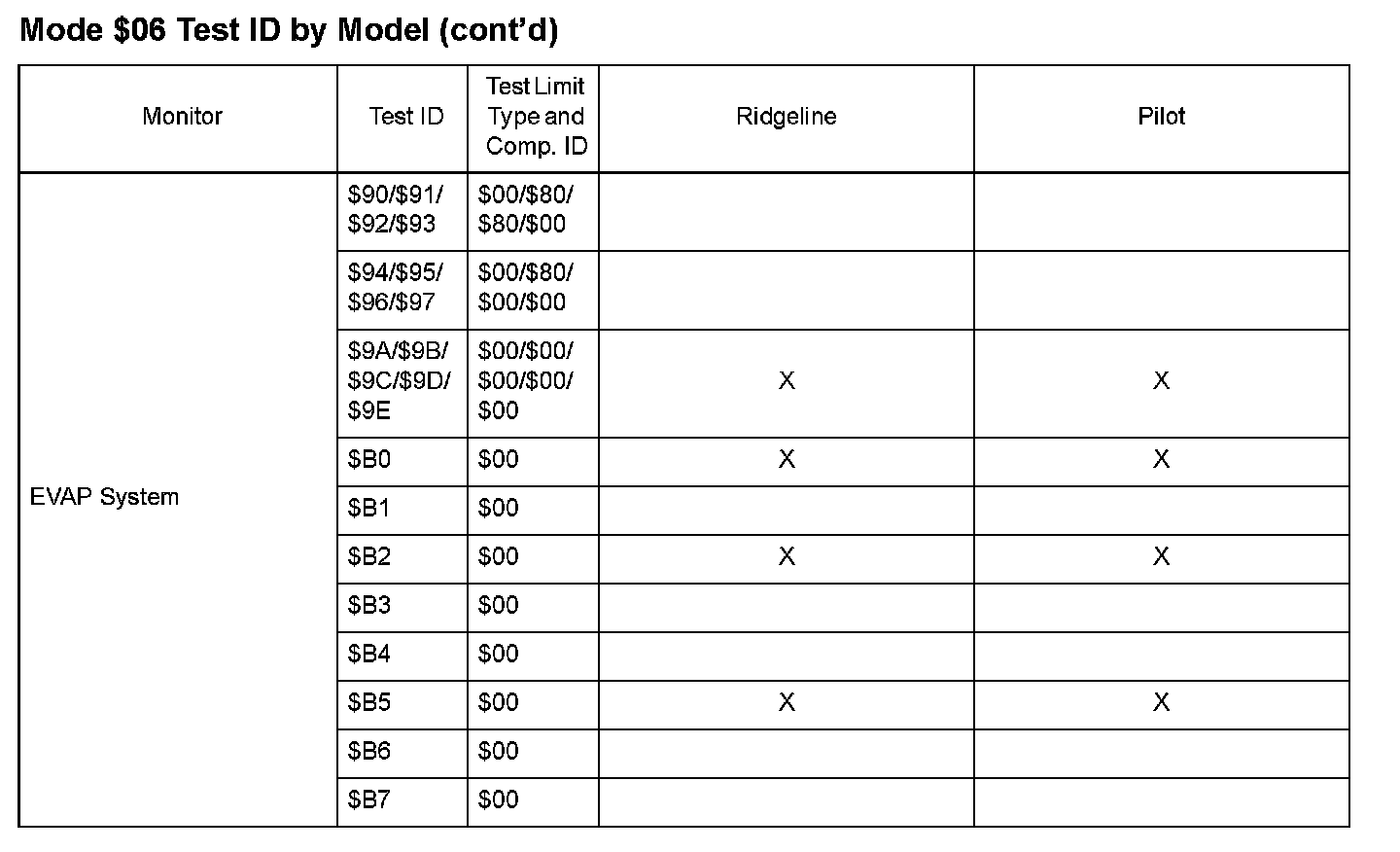 SAE J1979 Mode $06 Test Information: All 2008 Hondas