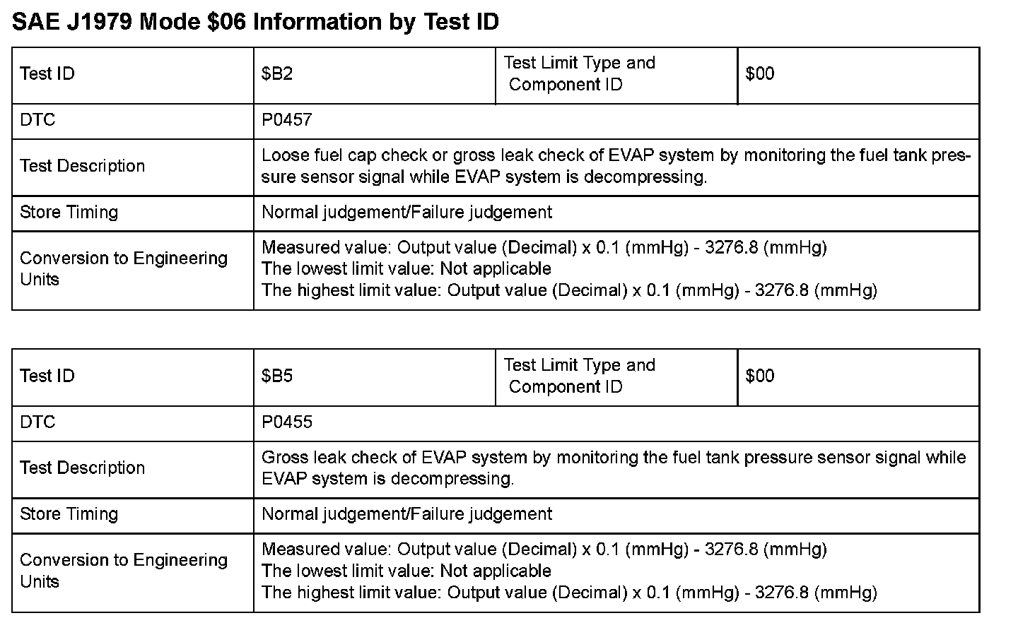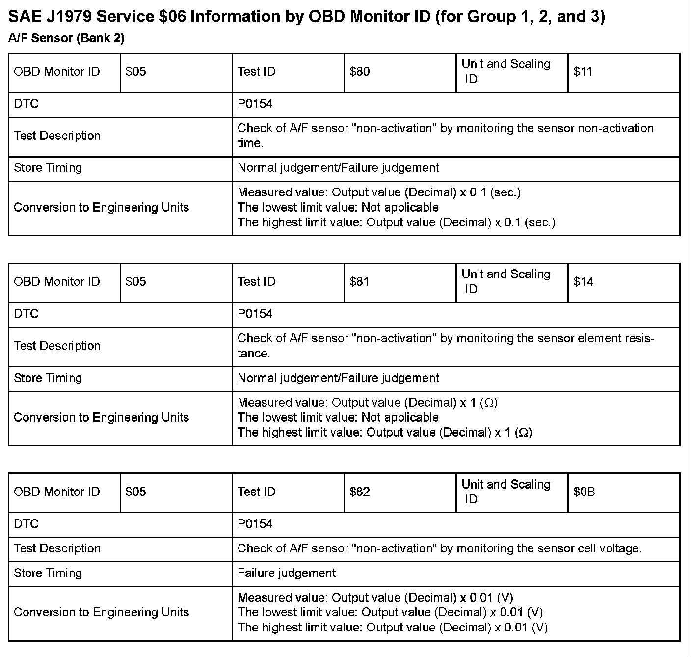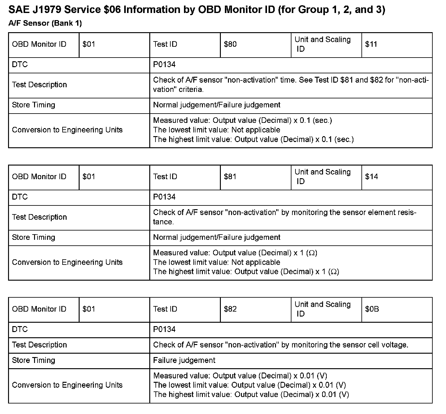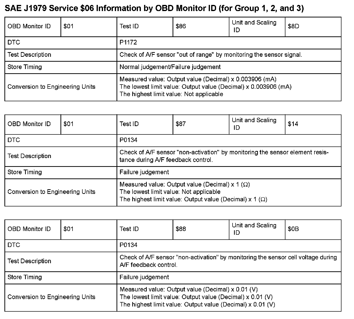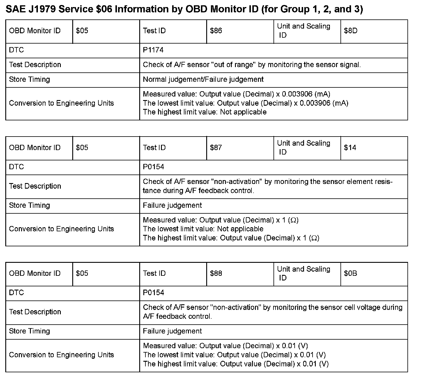 SAE J1979 Mode $06 Test Information: All 2008 Hondas