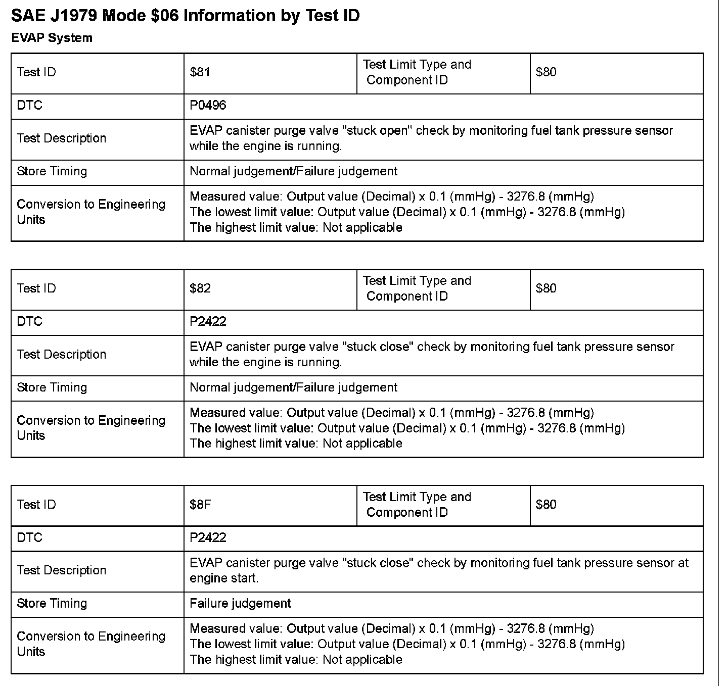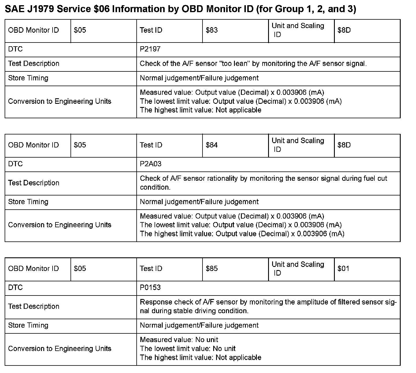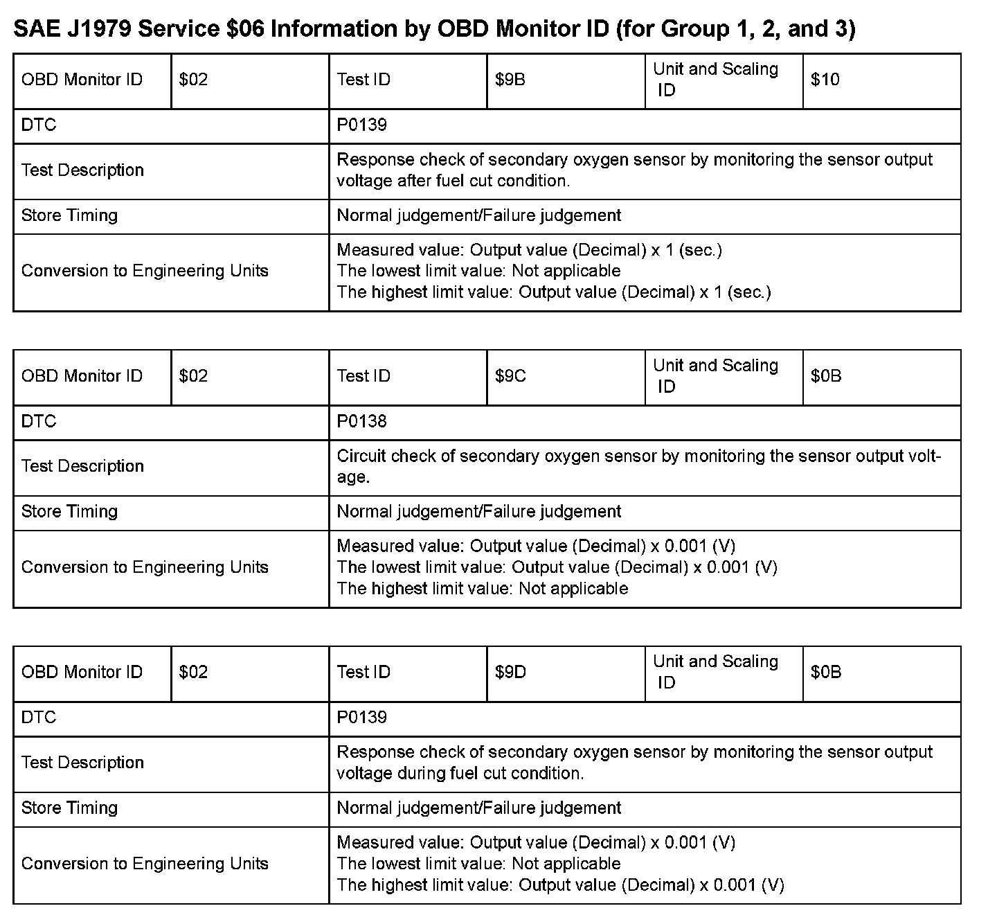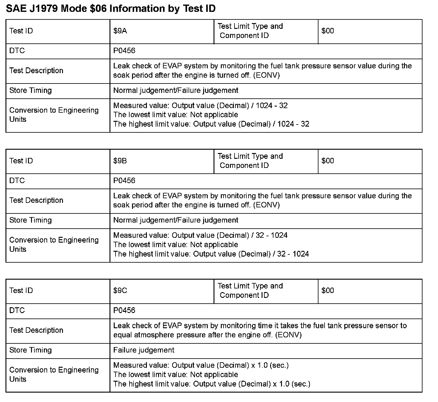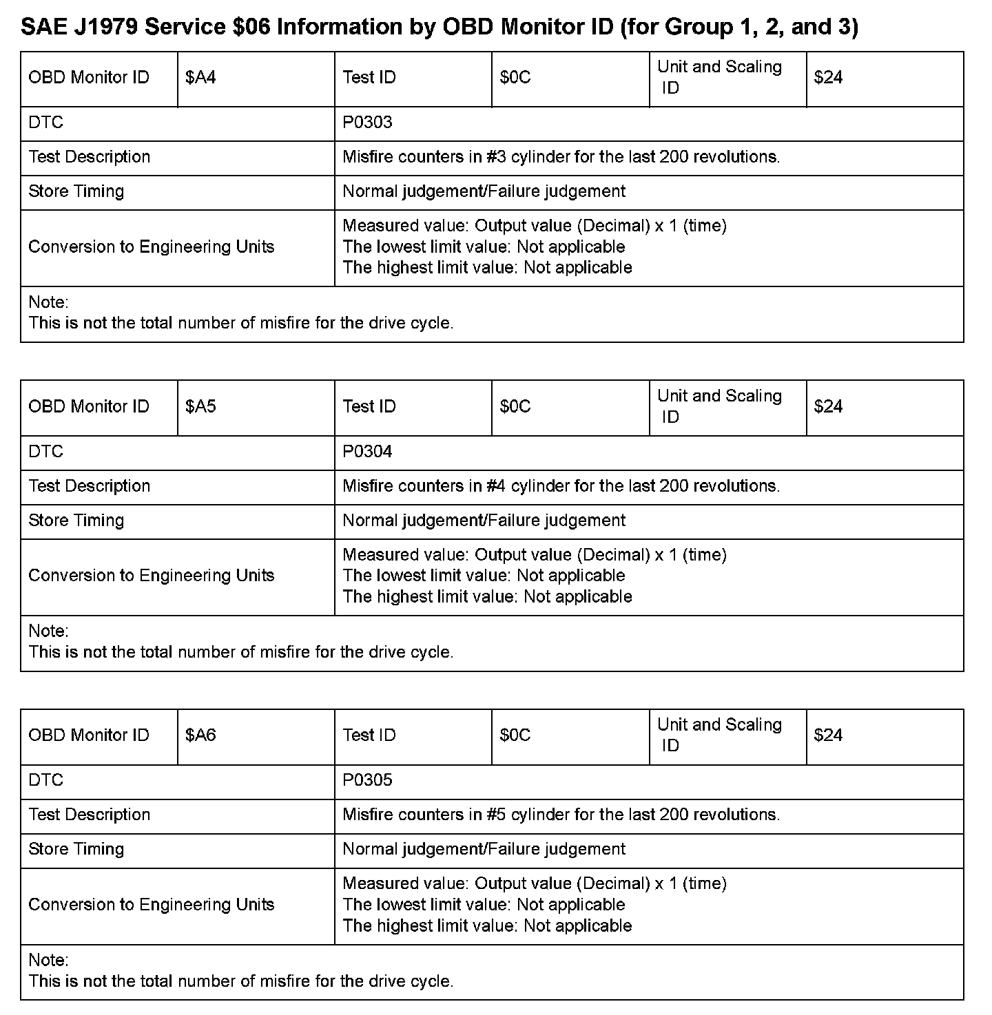 SAE J1979 Mode $06 Test Information: All 2008 Hondas