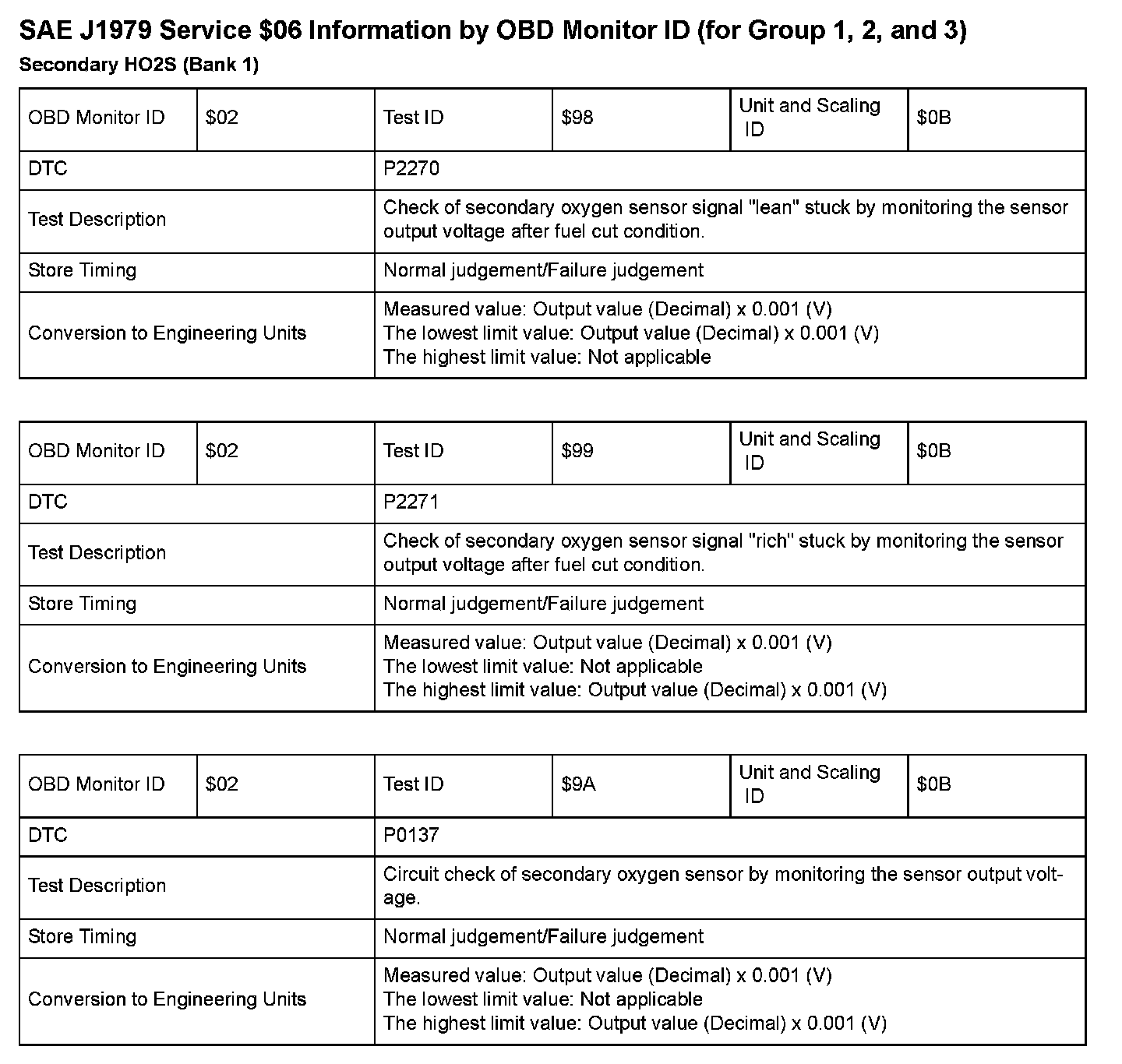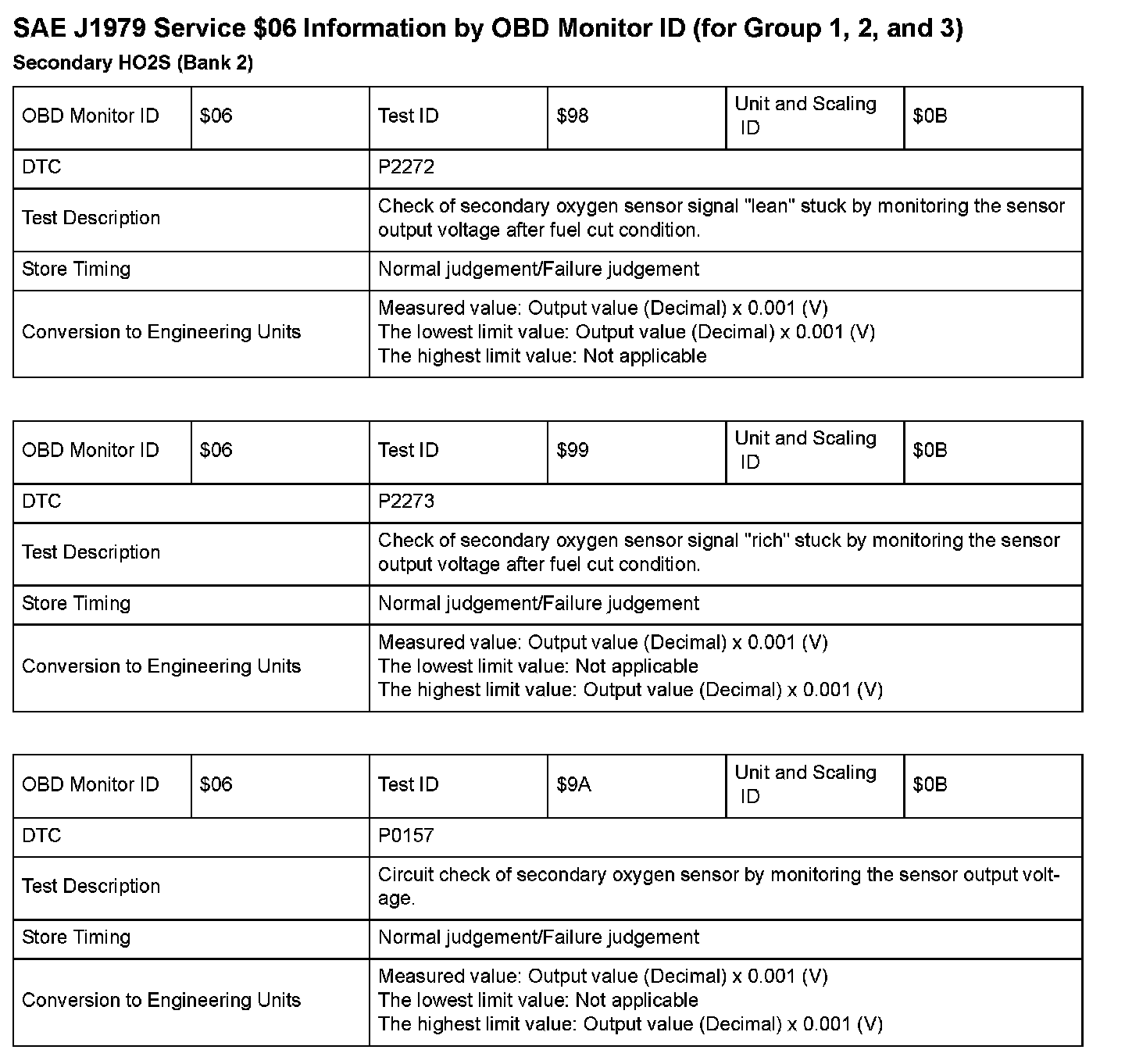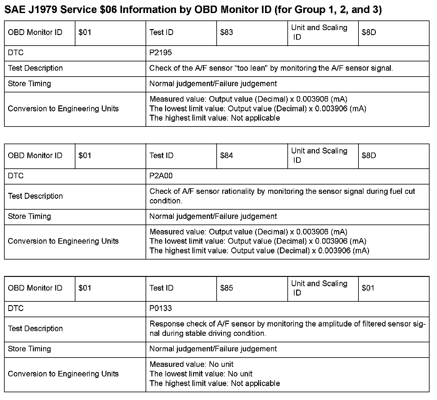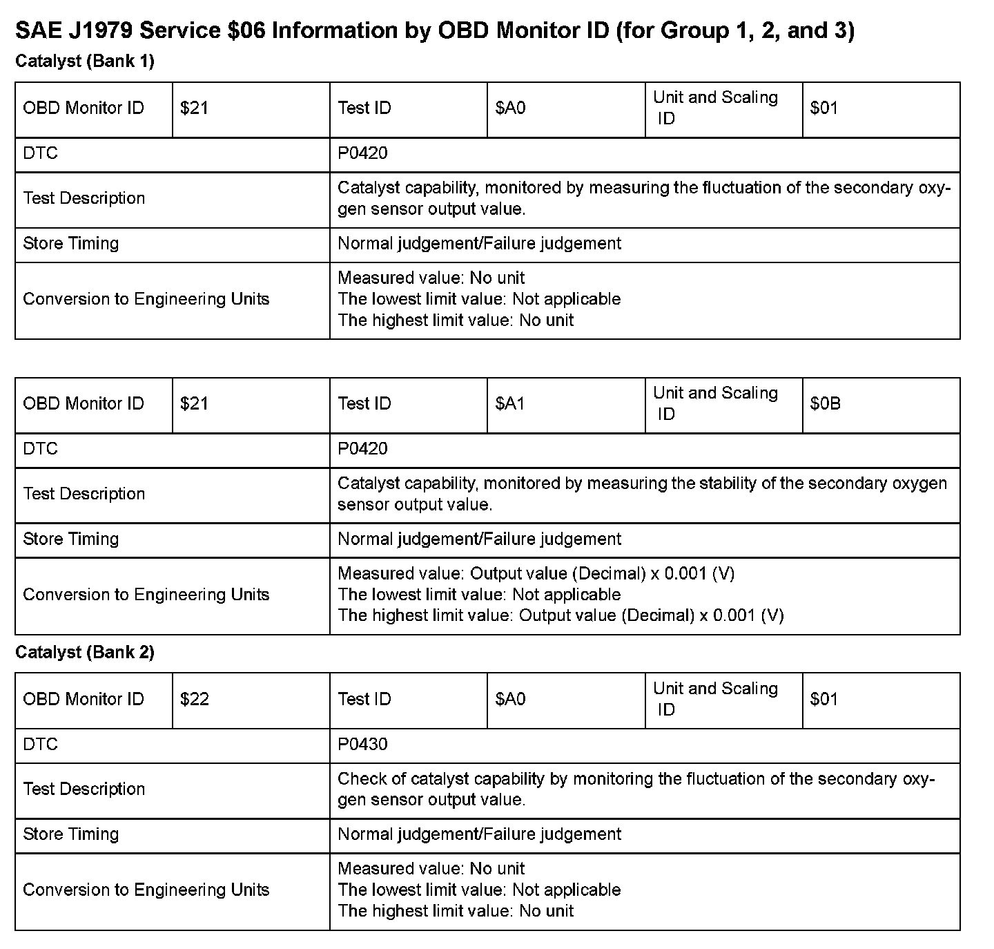 SAE J1979 Mode $06 Test Information: All 2008 Hondas