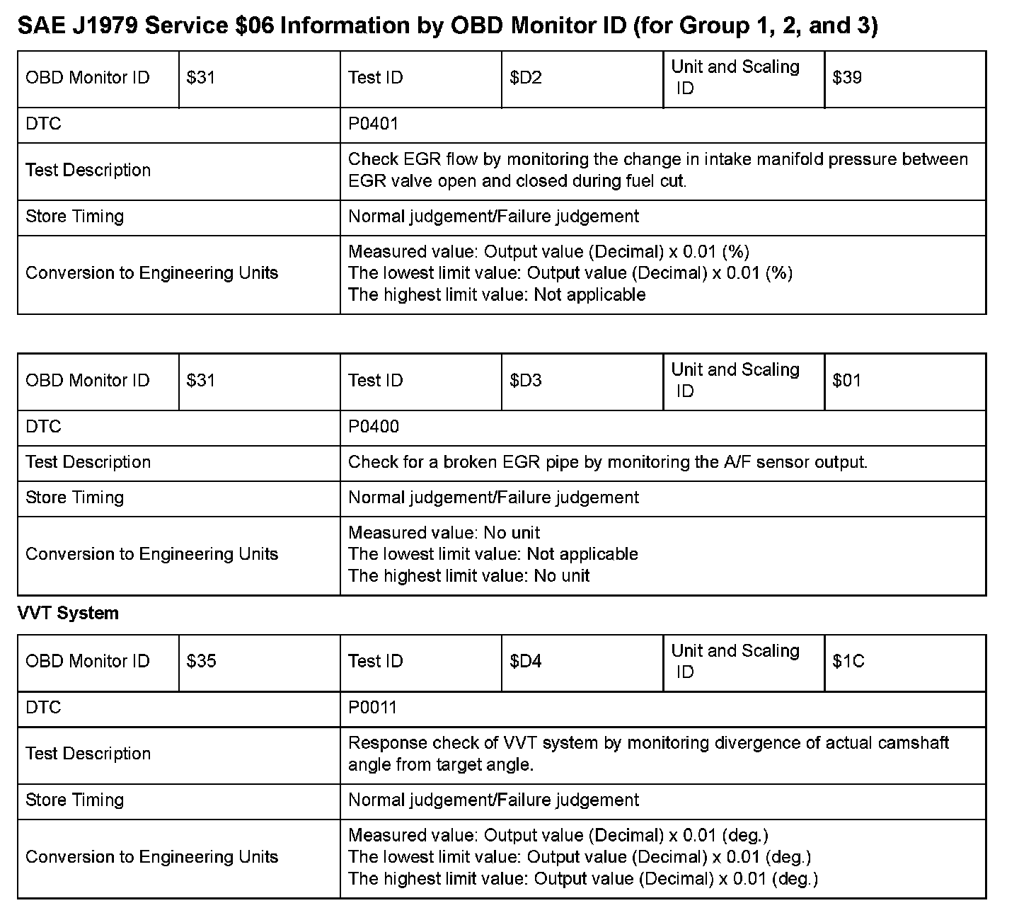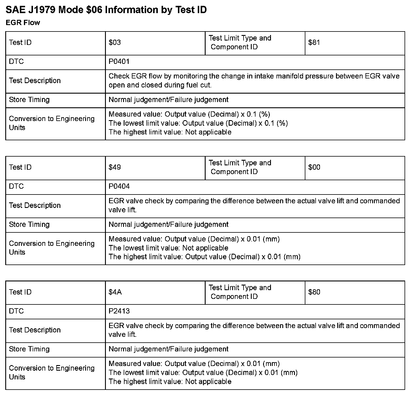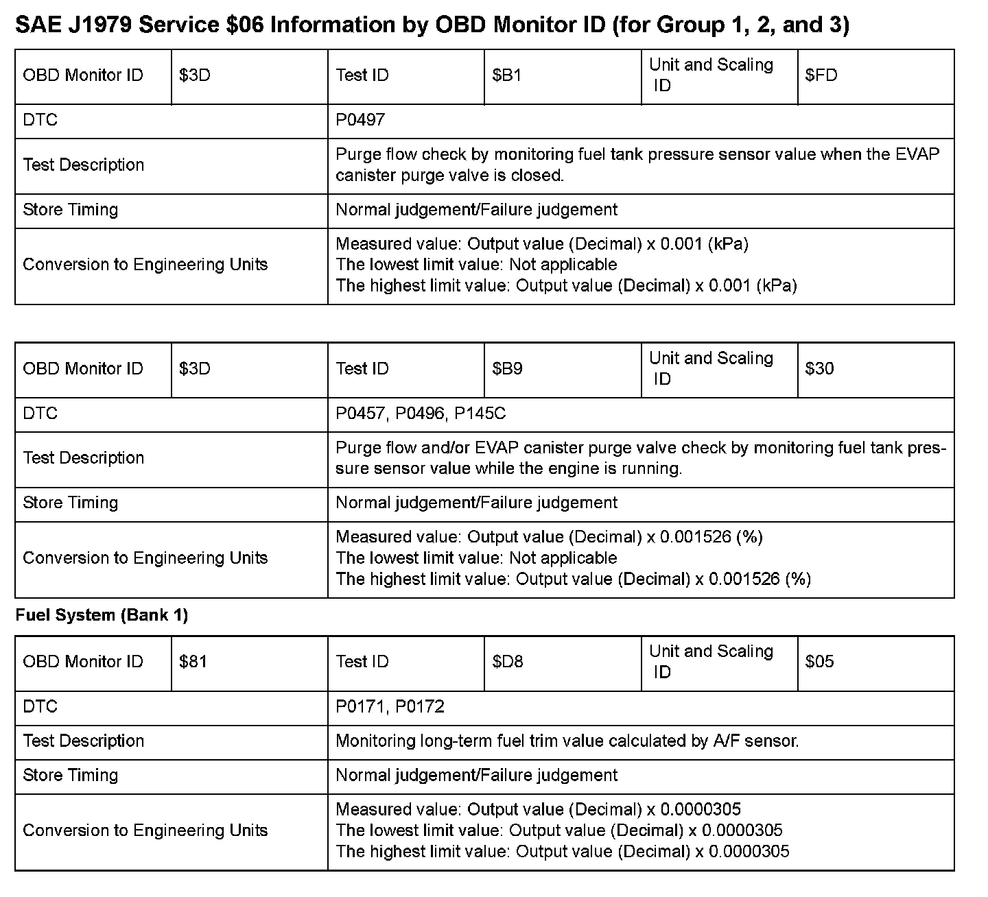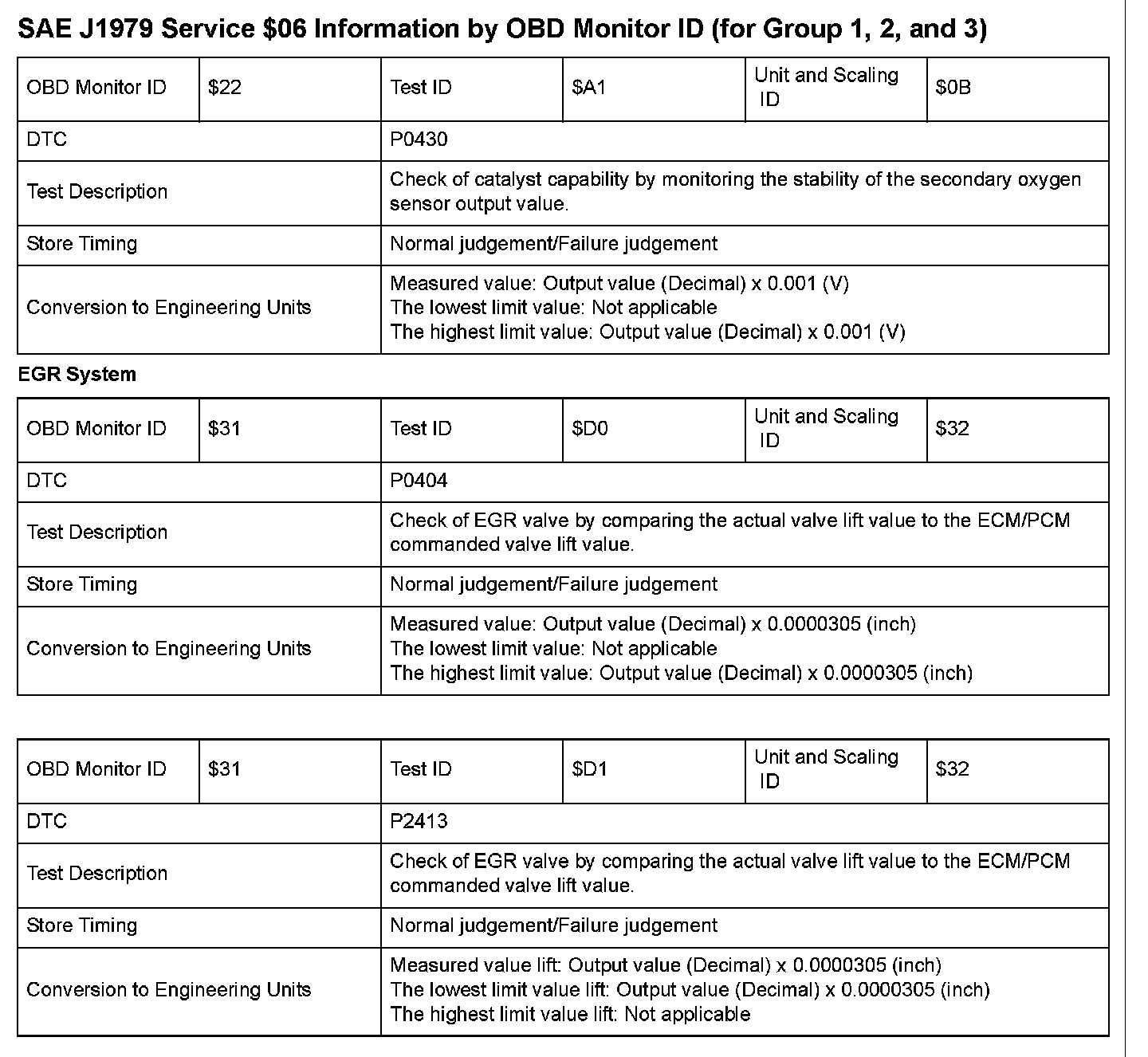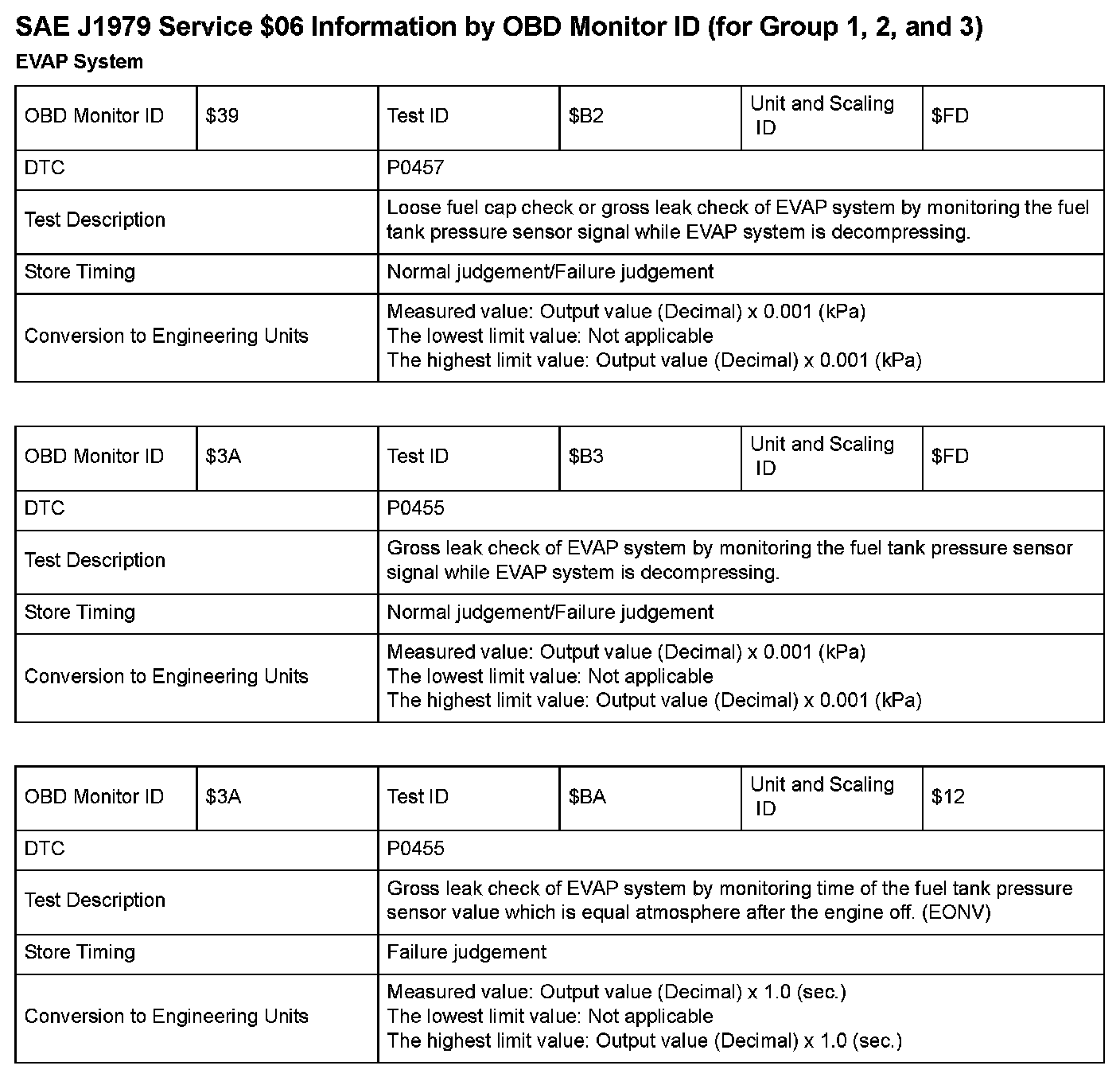 SAE J1979 Mode $06 Test Information: All 2008 Hondas