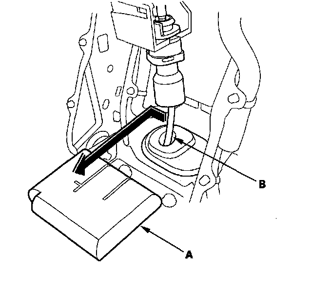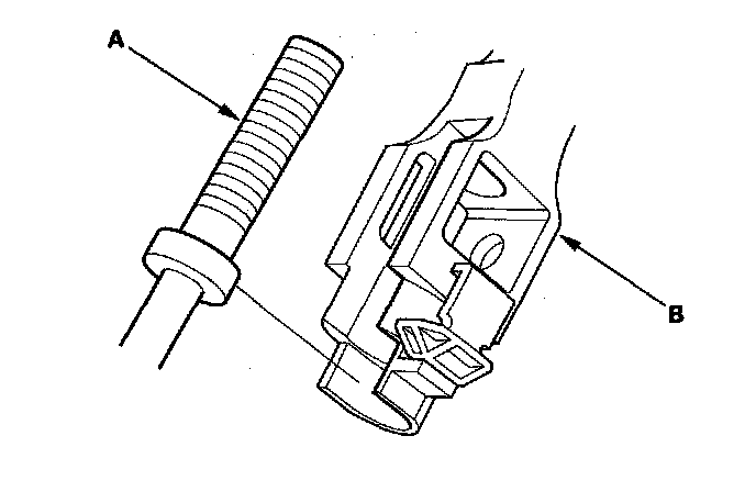 7. Separate the shift cable end (A) from the shift cable end holder (B).