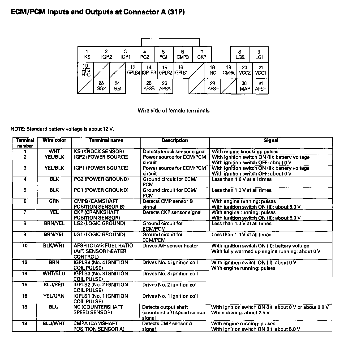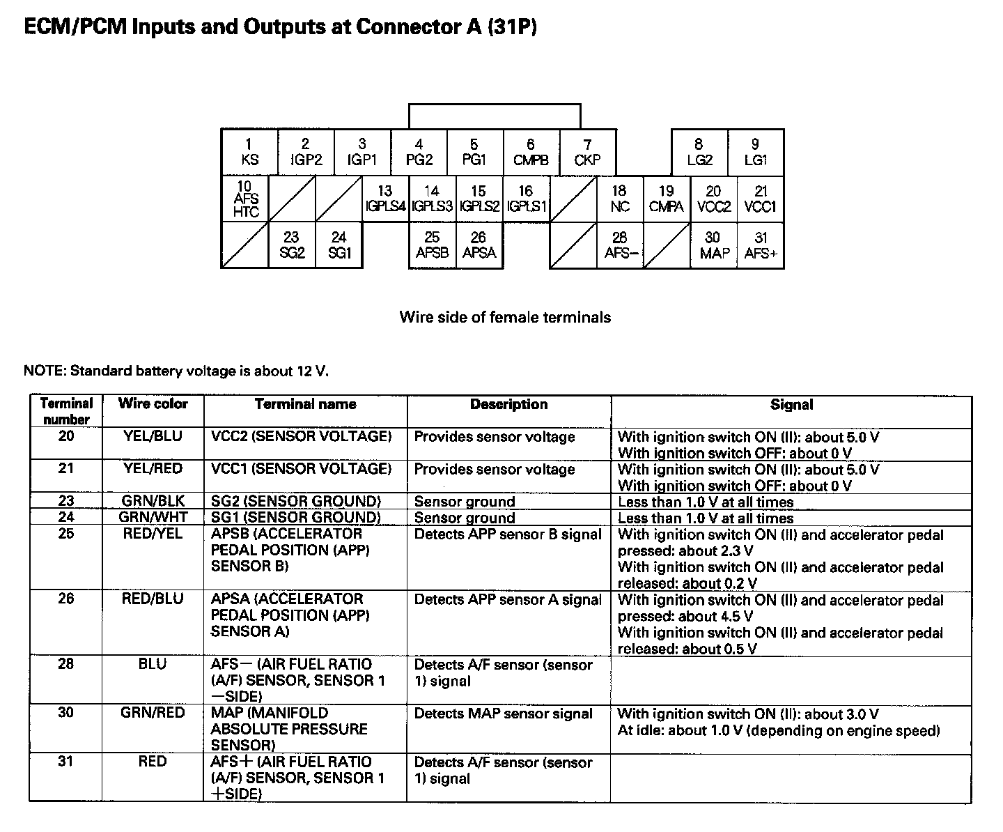 ECM/PCM Inputs And Outputs At Connector A (31P) Part 1: