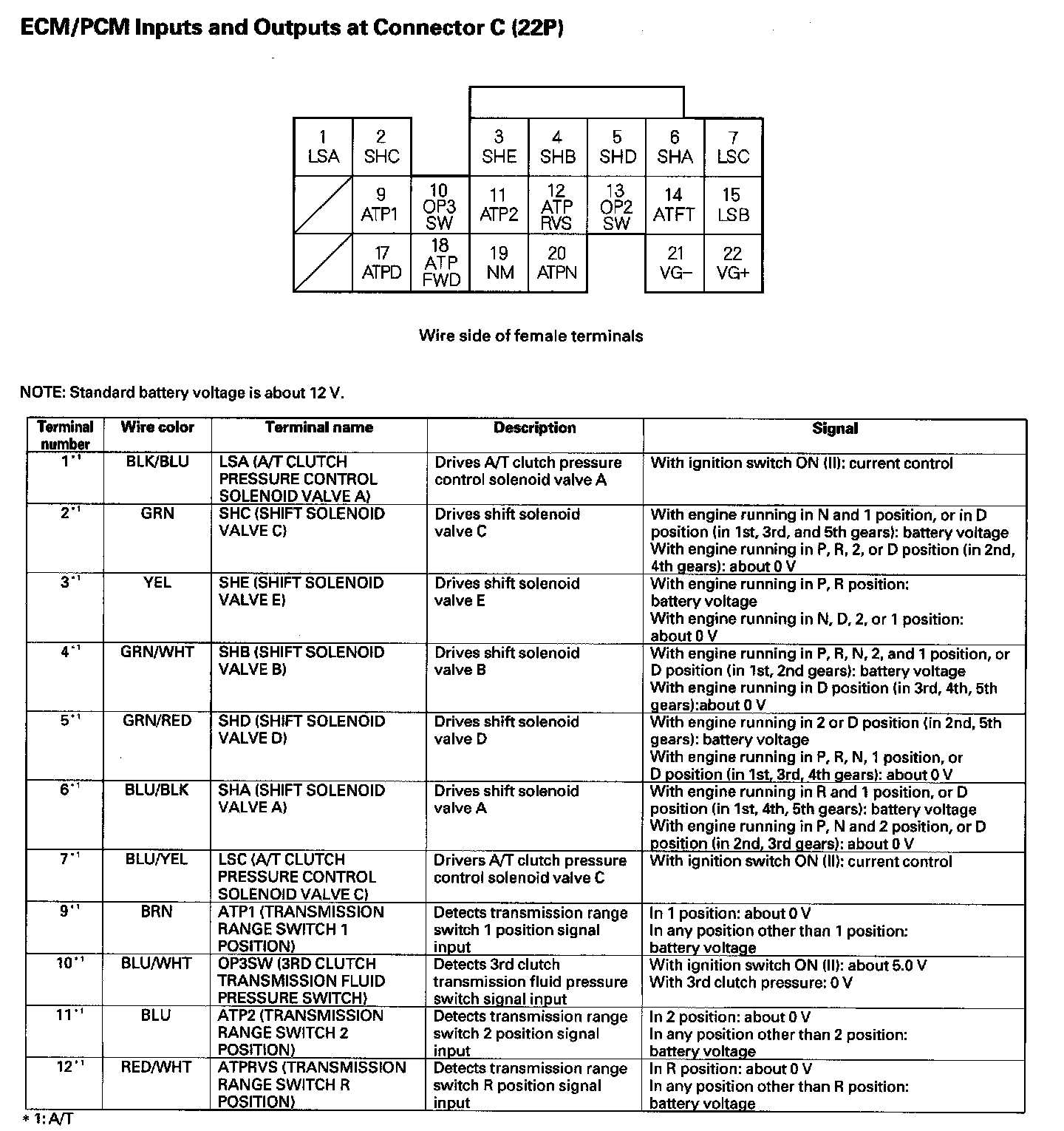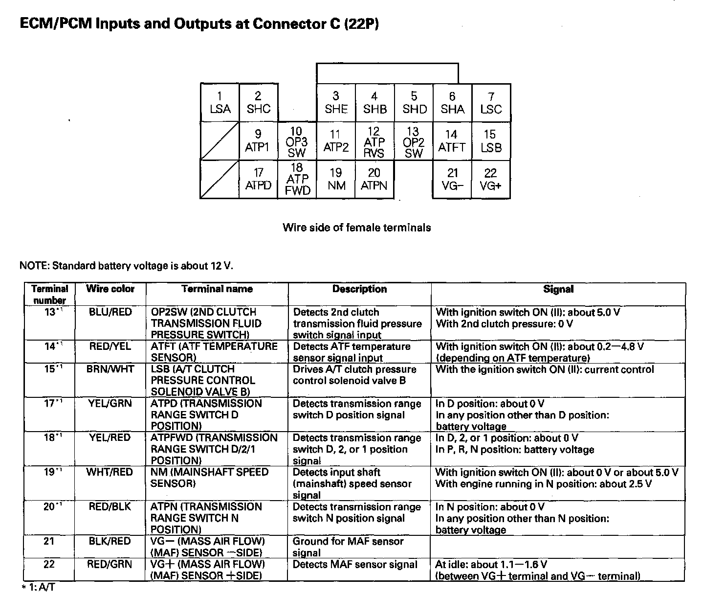 ECM/PCM Inputs And Outputs At Connector C (22P) Part 1: