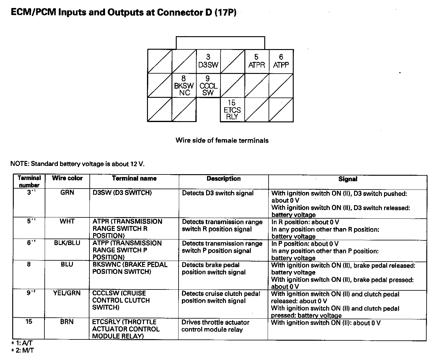 ECM/PCM Inputs And Outputs At Connector D (17P):