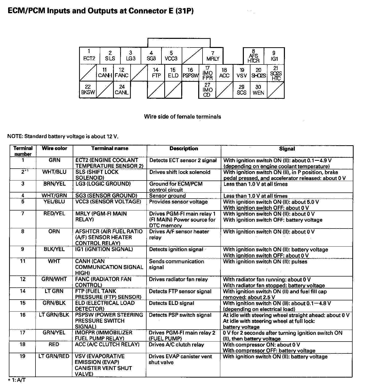 ECM/PCM Inputs And Outputs At Connector E (31P) Part 1: