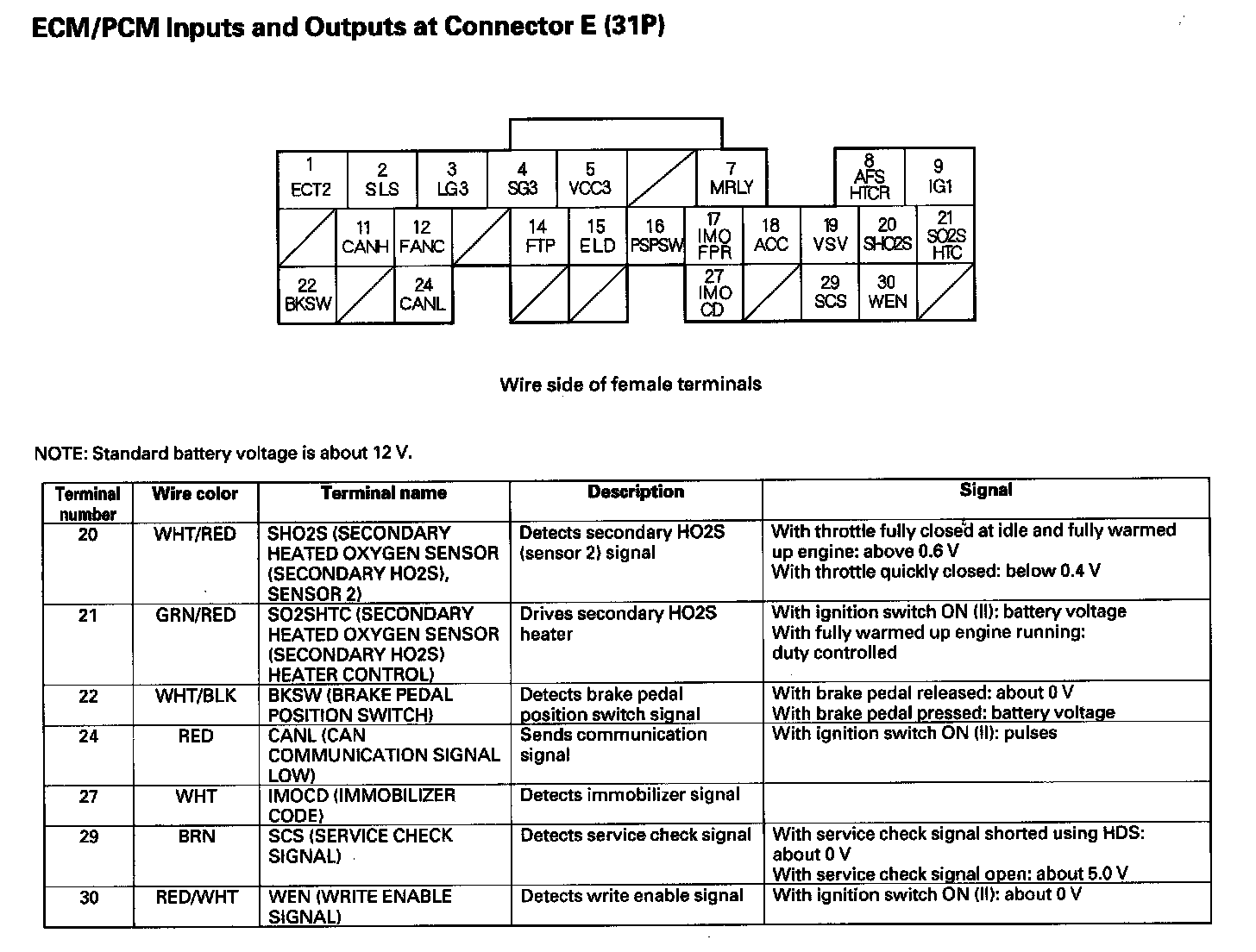 ECM/PCM Inputs And Outputs At Connector E (31P) Part 2: