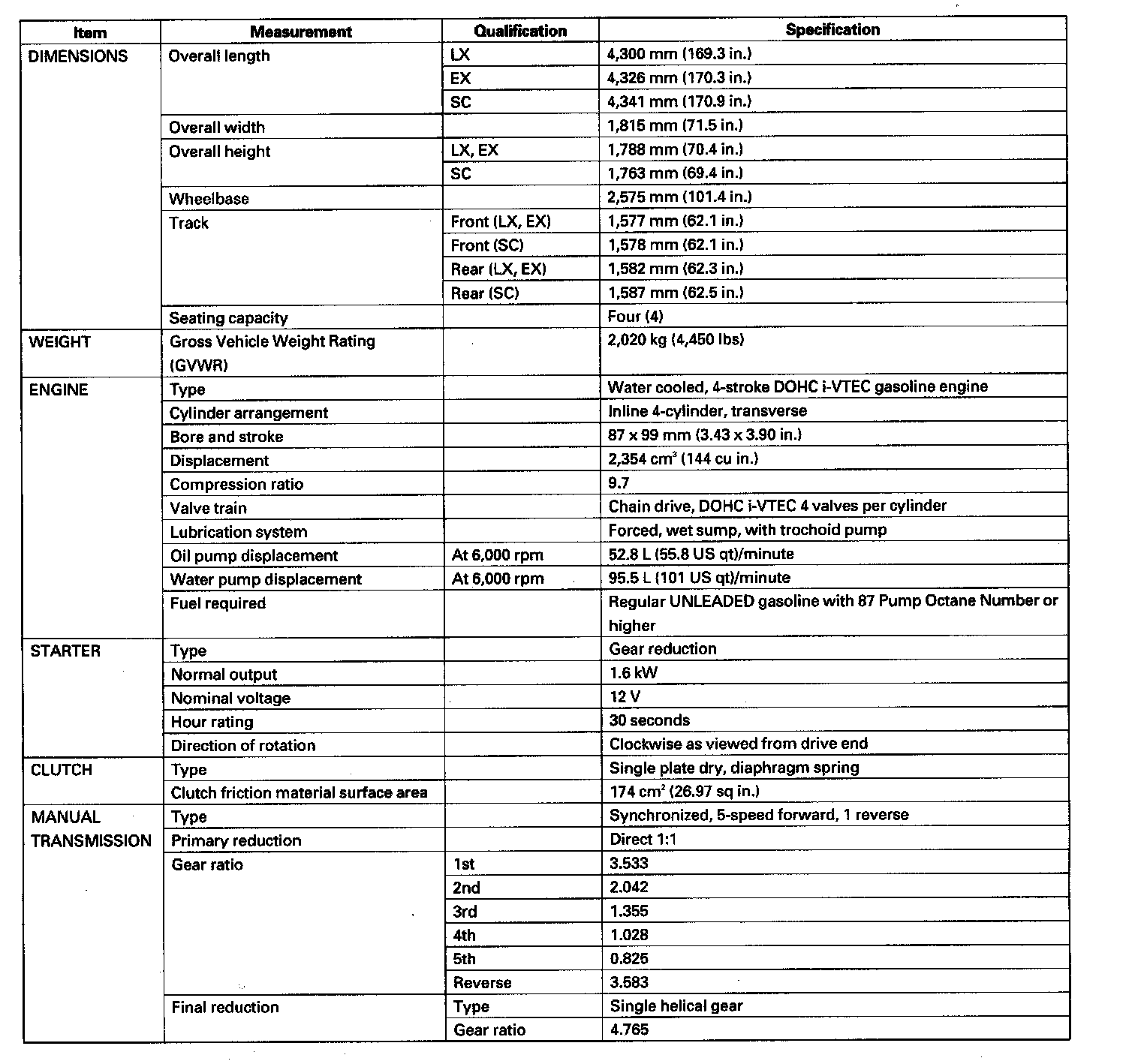 Element 4WD L4-2.4L