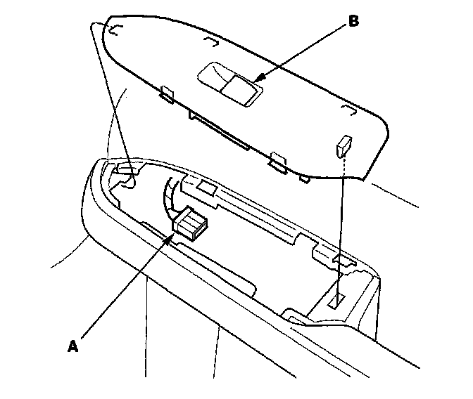 3. Disconnect the 5P connector (A) from the front passenger's power window switch (B).