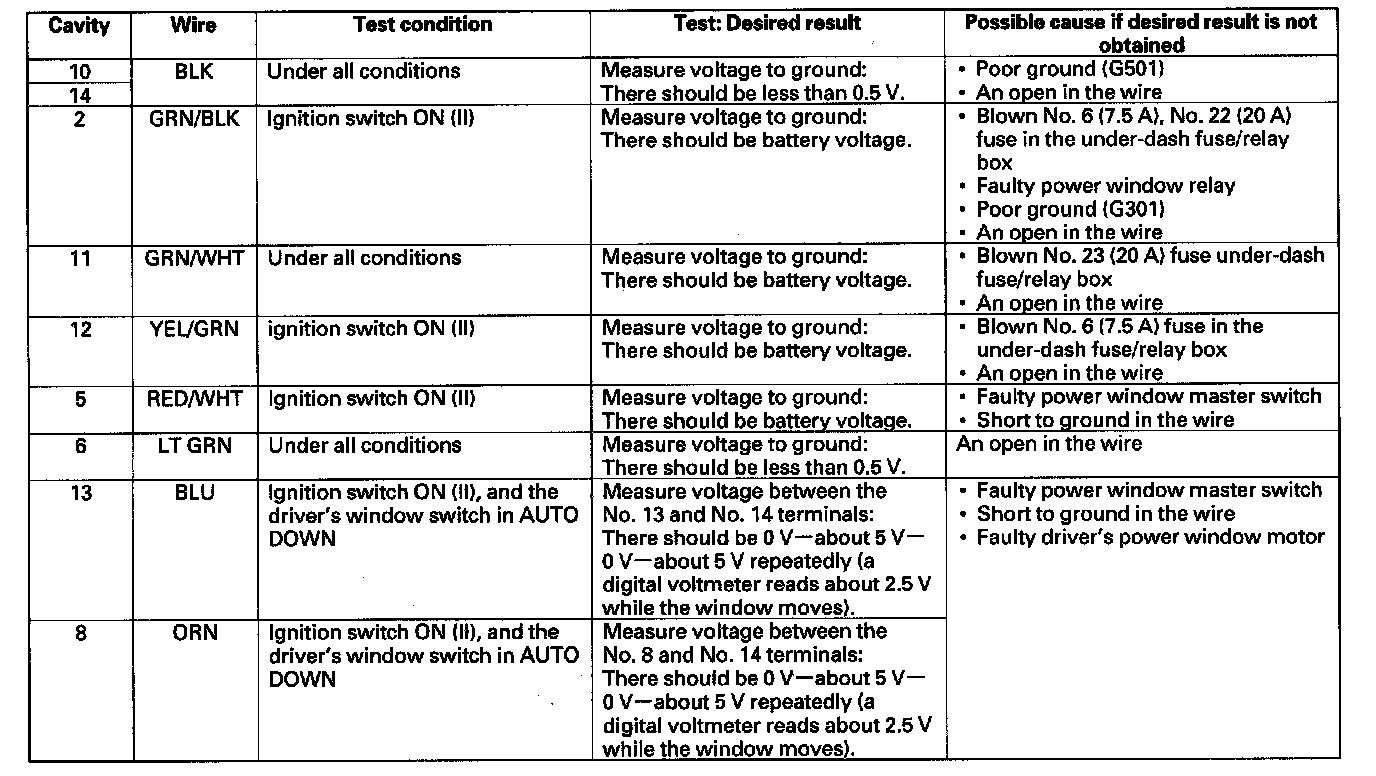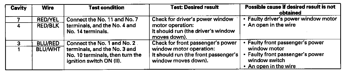 Home >> Honda >> 2008 >> Element 4WD L4-2.4L >> Repair and Diagnosis >> Windows and Glass >> Windows >> Testing and Inspection >> Component Tests and General Diagnostics >> Power Window Master Switch Input Test