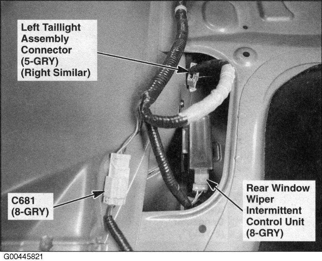 Rear Window Wiper Intermittent Control Unit Behind left quarterpanel. See Figure.
