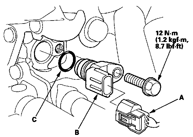 Install the parts in the reverse order of removal with a new O-ring (C).