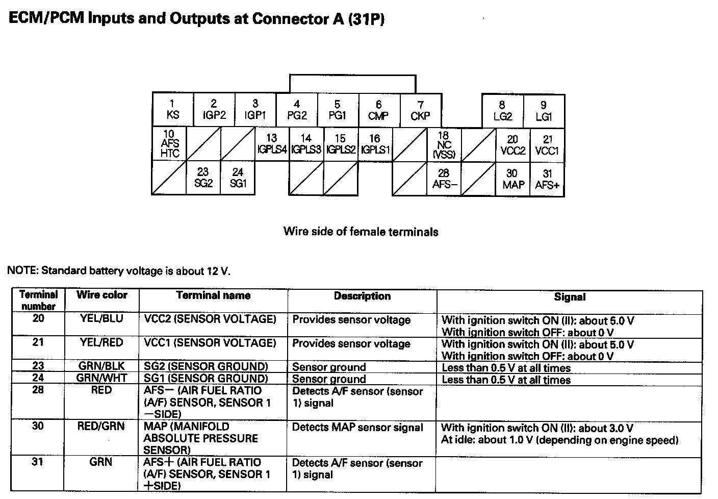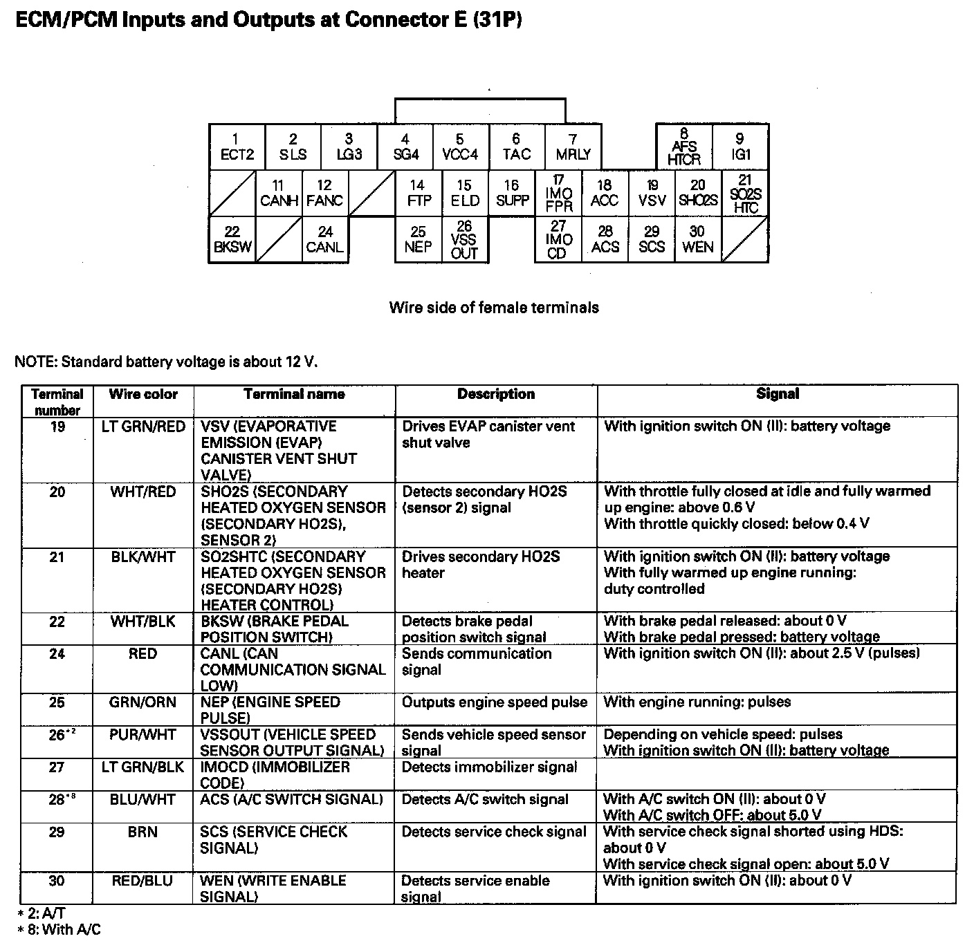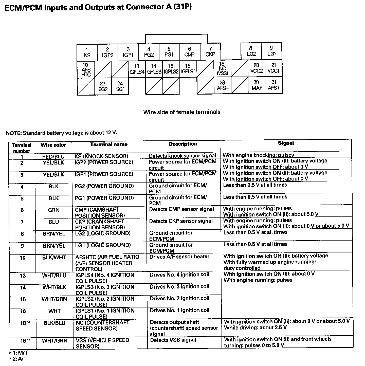 ECM/PCM Inputs And Outputs Connector A(31P) Part 1: