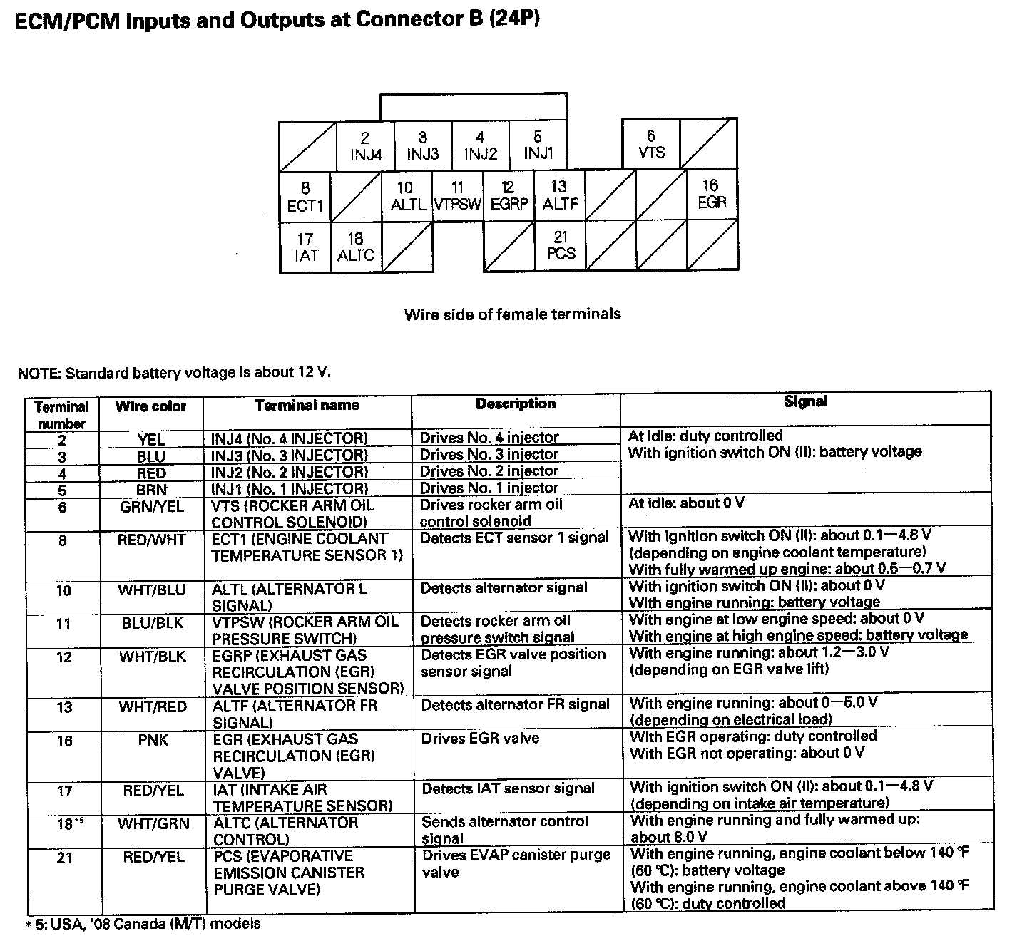 ECM/PCM Inputs And Outputs Connector B (24P):