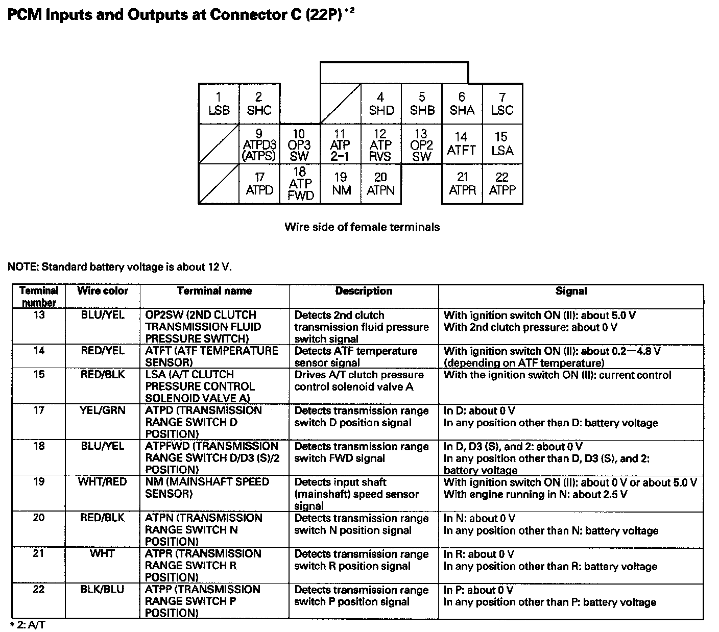 ECM/PCM Inputs And Outputs Connector C (22P) Part 2: