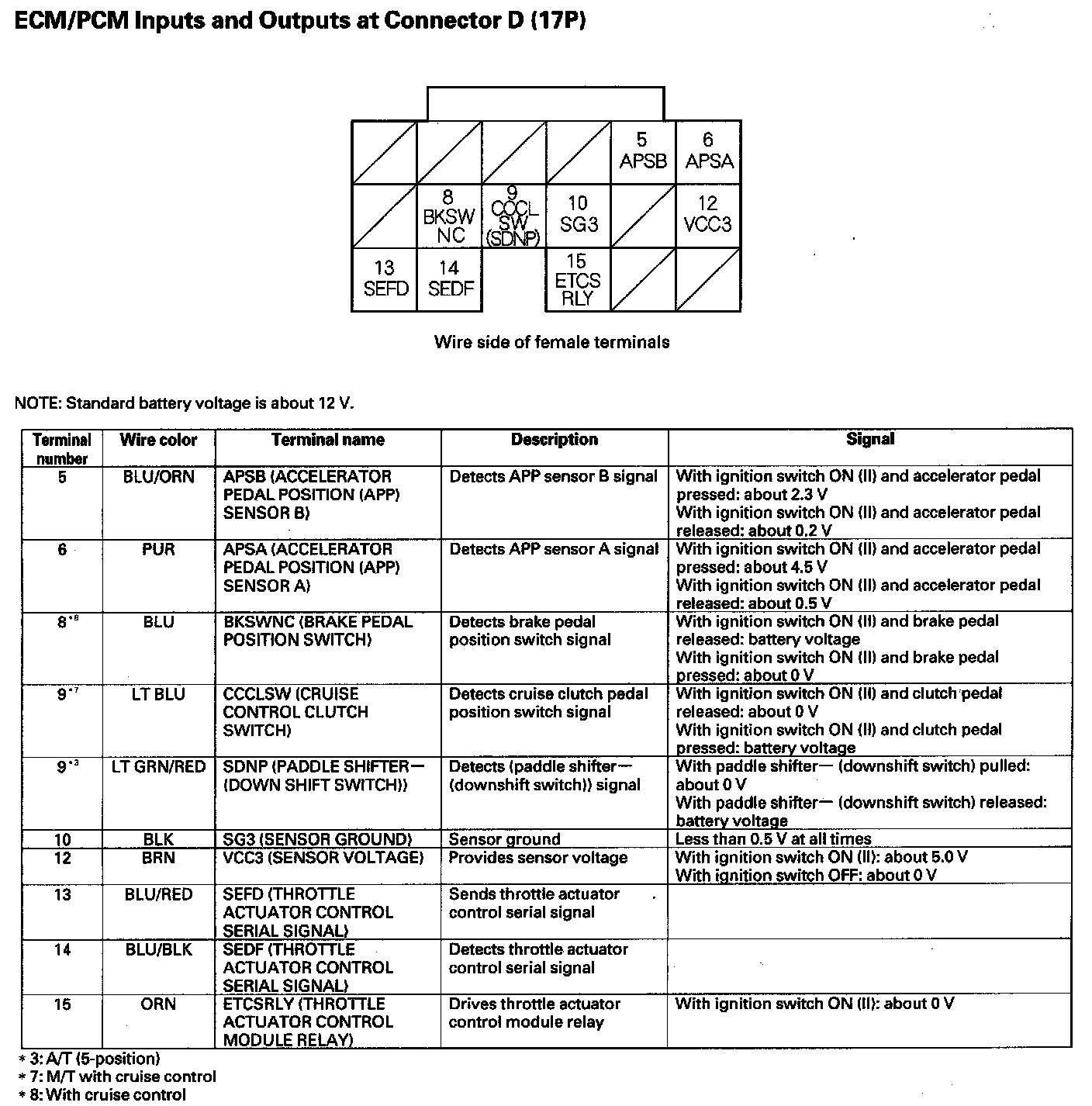 ECM/PCM Inputs And Outputs Connector D (17P):