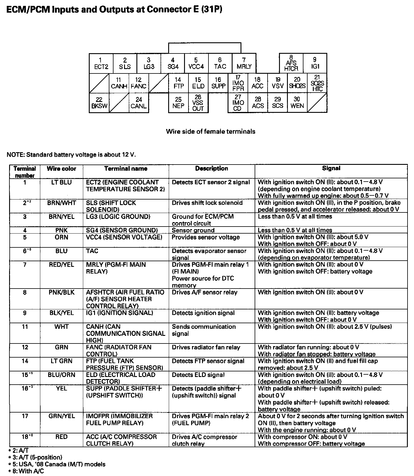 ECM/PCM Inputs And Outputs Connector E (31P) Part 2: