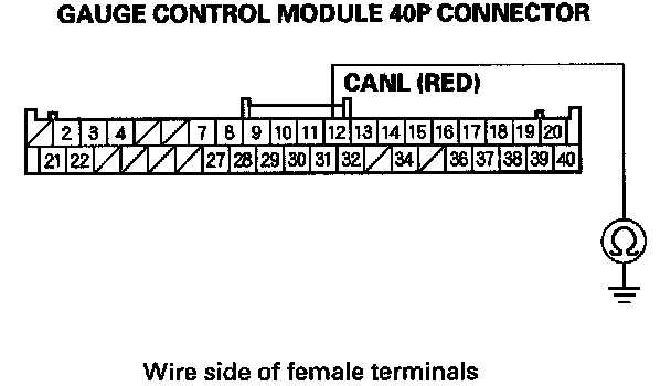 13. Check for continuity between gauge control module 40P connector terminal No. 12 and body ground.