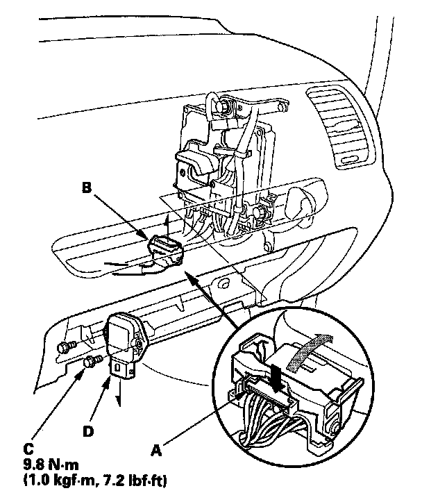 3. Remove the bolts (C), and the throttle actuator control module (D).