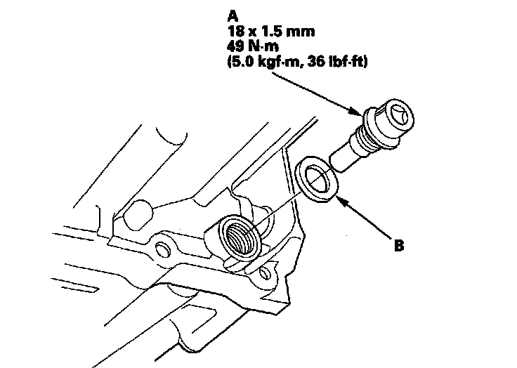 7. Reinstall the drain plug with a new sealing washer (B).
