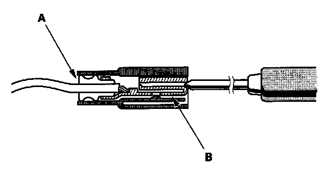 3. If you cannot get to the wire side of the connector or the wire side is sealed (A), disconnect the connector and probe the terminals (B) from the terminal side. Do not force the probe into the connector.