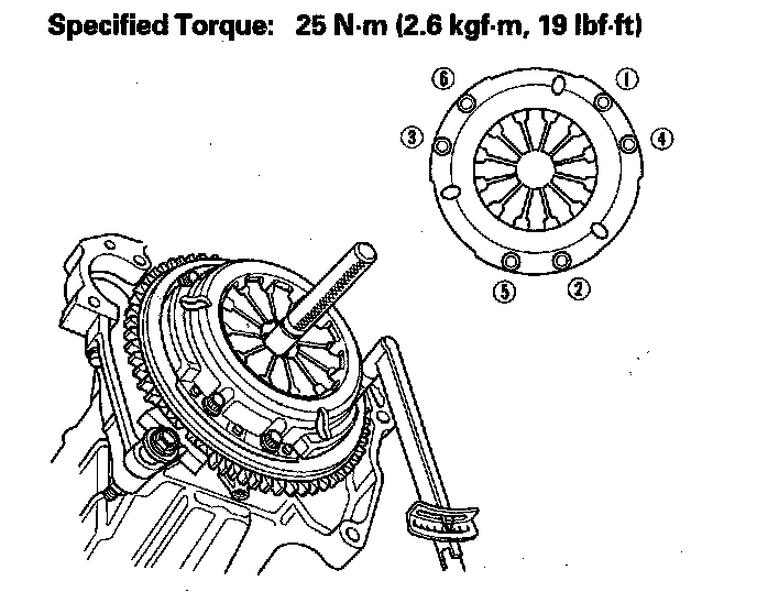 Torque the mounting bolts in a crisscross pattern. Tighten the bolts in several steps to prevent warping the diaphragm spring.