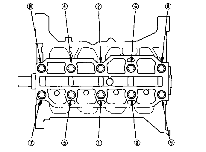 Main bearing capTighten the bearing cap bolts in sequence 25 Nm (2.5 kgf-m, 18 lbf-ft)