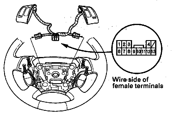 - If there is continuity, and it matches the table, but switch failure occurred on the cruise control input test, check and repair the wire harness on the switch circuit.