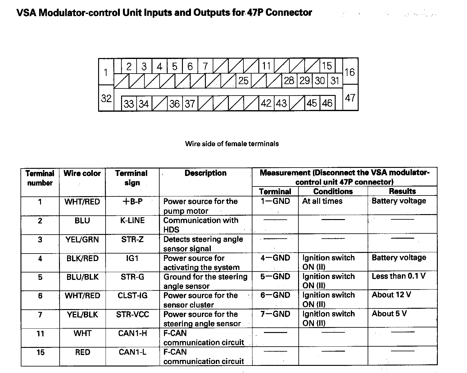 VSA Modulator-control Unit Inputs and Outputs for 47P Connector (Part 1):