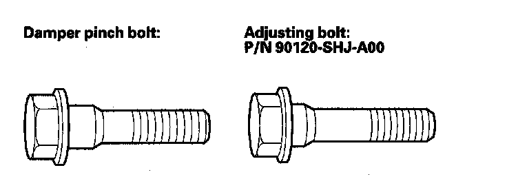The front camber can be adjusted by exchanging one or both of the damper pinch bolts with a smaller diameter adjusting bolt. The difference between the adjusting bolt diameter and the pinch bolt hole diameter allows for a small range of adjustment.