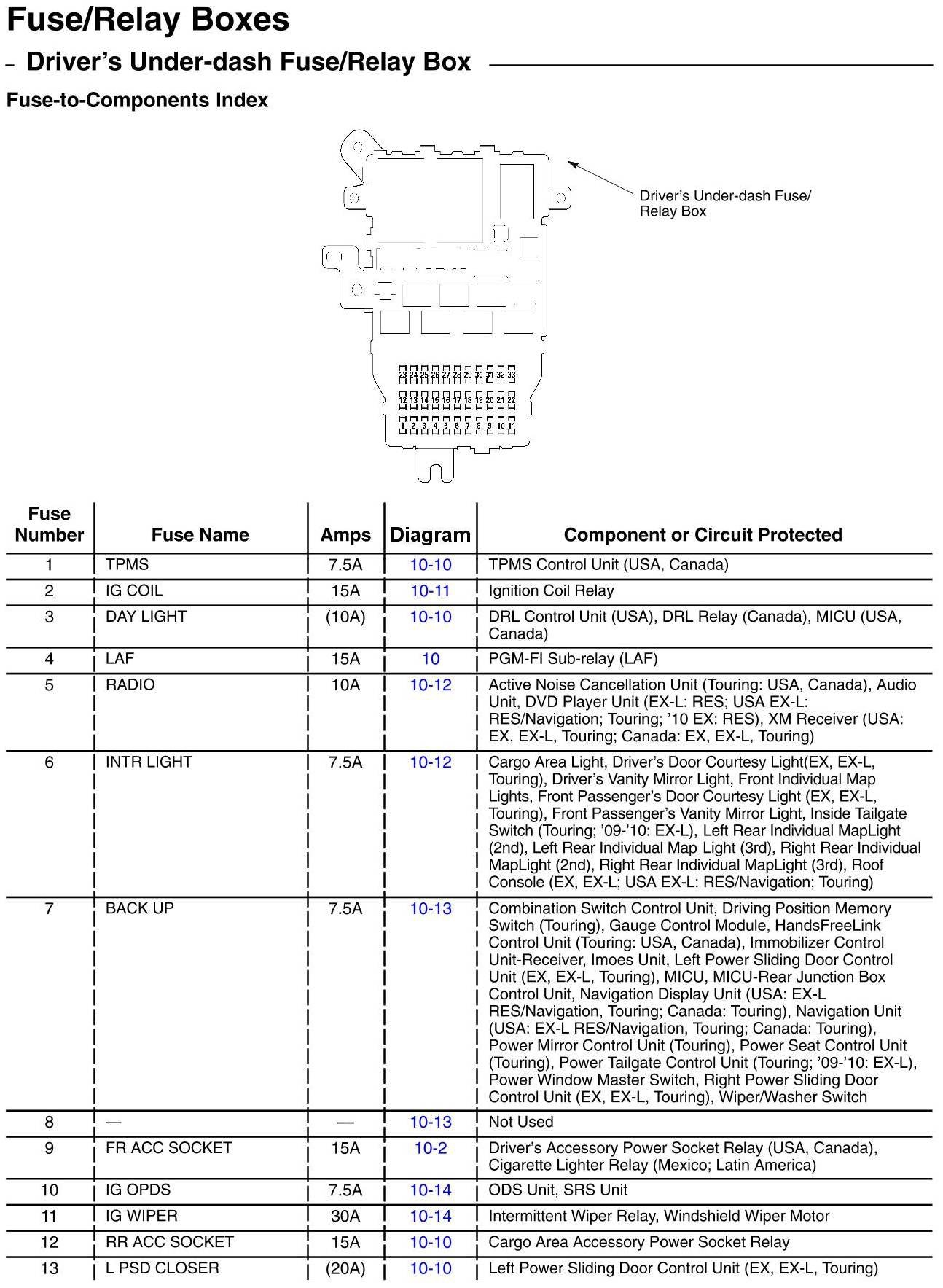 Driver's Under-Dash Fuse/Relay Box - Fuse-To-Components Index