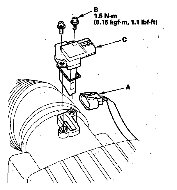 3. Remove the MAF sensor/IAT sensor (C).