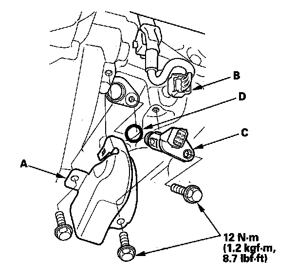 5. Install the parts in the reverse order of removal with a new O-ring (D).