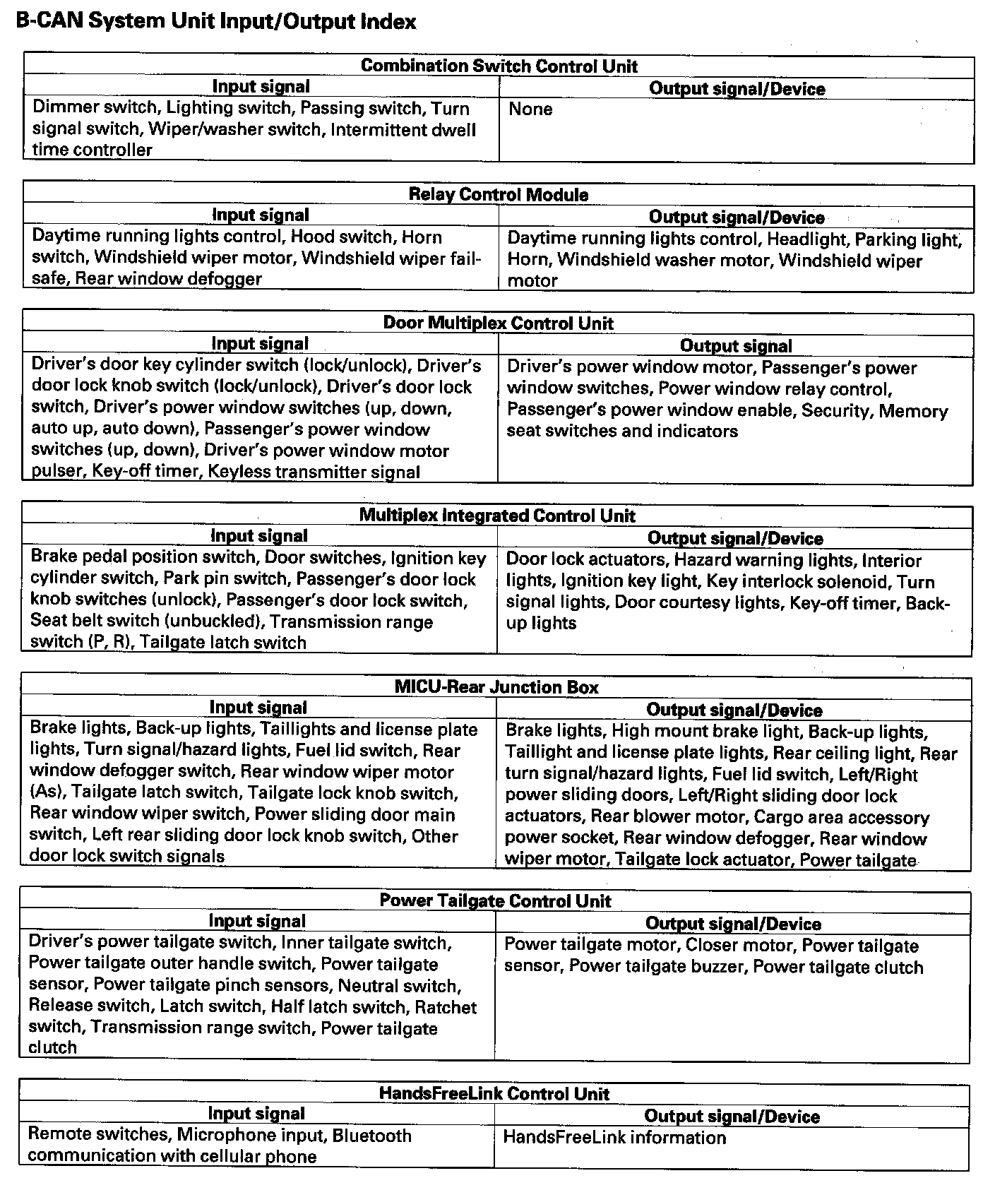 The ECUs on the B-CAN and the F-CAN transmit and receive information in the form of structured messages that may be received by several different ECUs on the network at one time. These messages are transmitted and received across a communication circuit that consists of a single wire that is shared by all the ECUs on the circuit. Since messages on the F-CAN are typically of higher importance, a second wire is used for communication circuit integrity monitoring. A backup circuit is also added to the headlight and wiper circuits on the B-CAN in the event of a network wire or ECU failure that would effect the operation of the system.