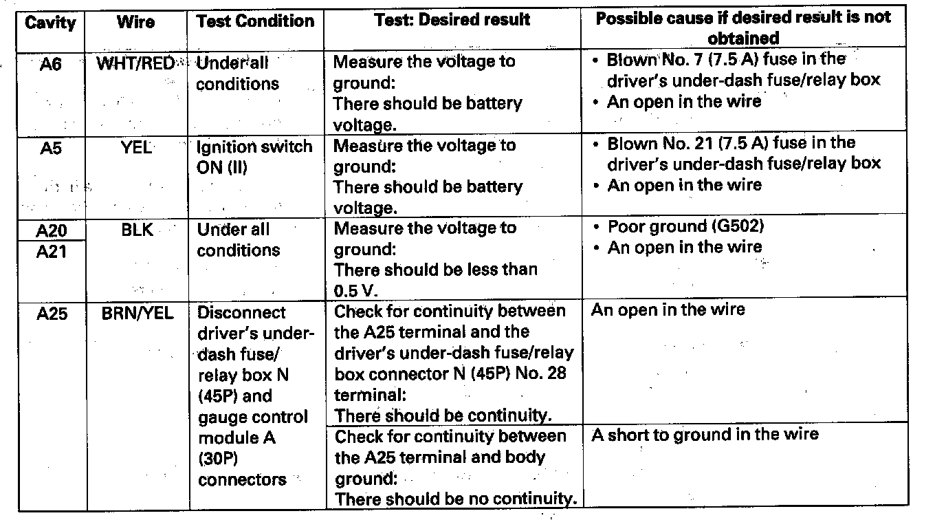 Home >> Honda >> 2008 >> Odyssey V6-3.5L >> Repair and Diagnosis >> Powertrain Management >> Computers and Control Systems >> Information Bus >> Testing and Inspection >> Component Tests and General Diagnostics >> Gauge Control Module Input Test