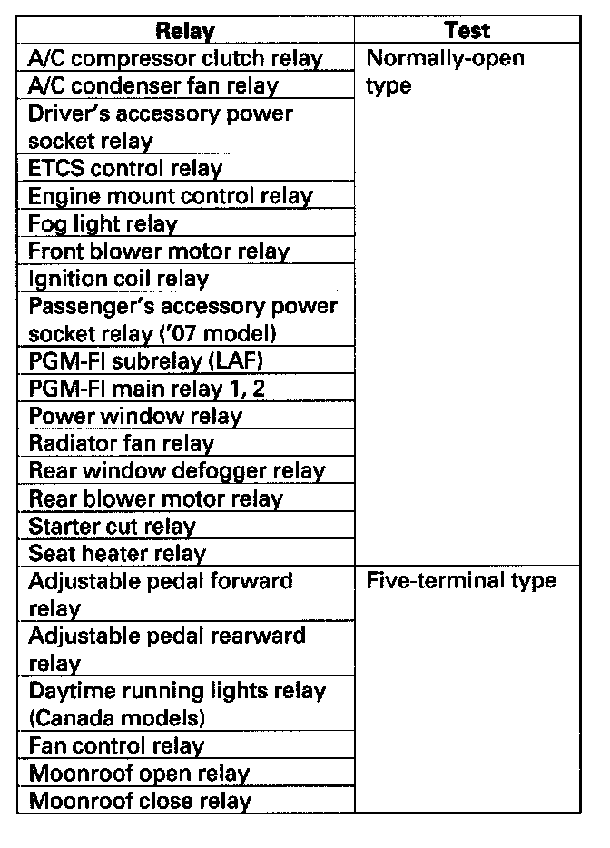 - PGM-FI main relay 2 contains a diode between No. 3 and No. 4 terminals. Power (+B) must be connected to the No. 4 terminal, and ground connected to the No. 3 terminal. Failure to test relay correctly will damage the relay and the PCM.