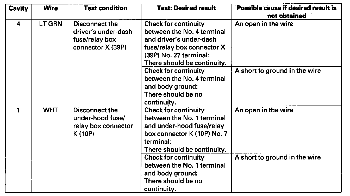 5. With the connector still disconnected, make these input tests at the connector.