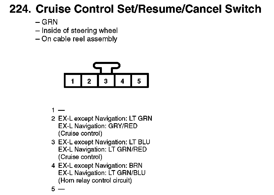 Home >> Honda >> 2008 >> Pilot 2WD V6-3.5L >> Repair and Diagnosis >> Diagrams >> Connector Views >> Cruise Control Switch