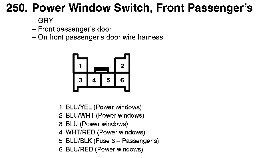 250. Power Window Switch, Front Passenger's: