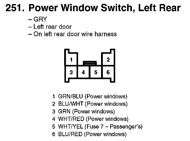 251. Power Window Switch, Left Rear:
