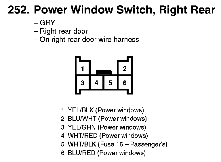 252. Power Window Switch, Right Rear: