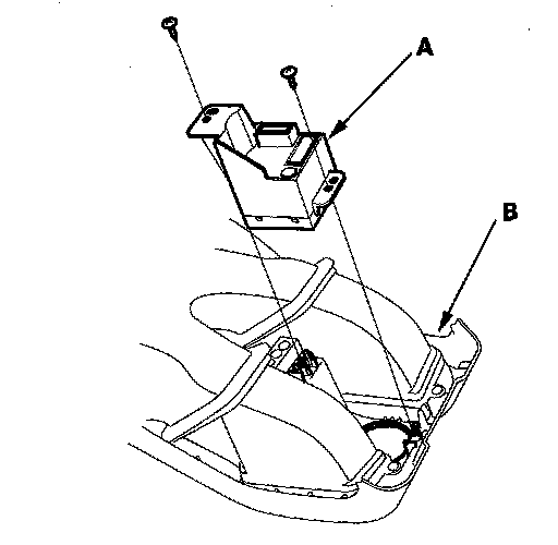 2. Remove the self-tapping screws and the rear heater-A/C control switch (A) from the console rear trim (B).